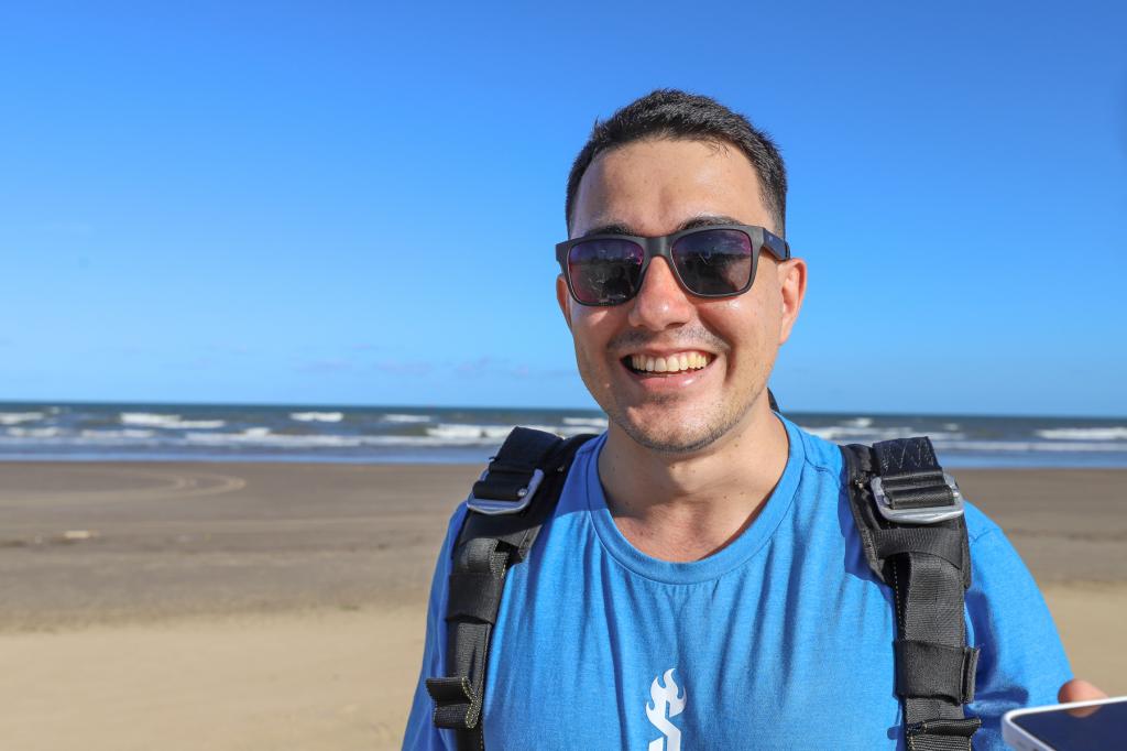 “É uma oportunidade surreal. Falei para minha família que a primeira vez que voasse de avião eu não ia pousar com ele. E essa iniciativa é surreal para o turismo da cidade, quando um amigo me disse sobre esses saltos de hoje, com uma cidade maravilhosa dessa, eu ia vir, com certeza. A praia é linda e você pode ver tudo lá de cima”, disse o turista baiano de Ilhéus, que realizou o salto duplo, acompanhado de um instrutor.