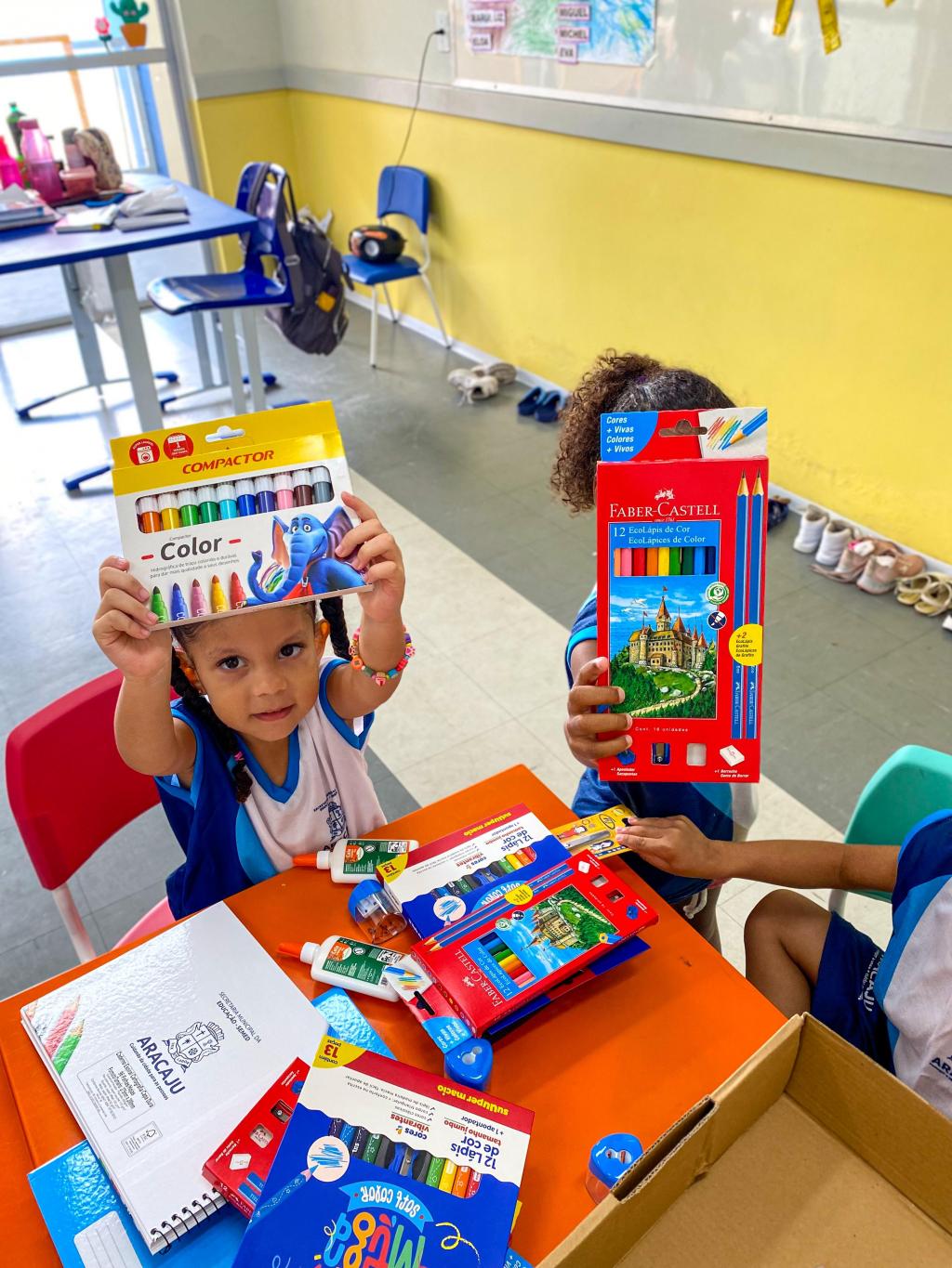 "Eles adoram abrir a mochila e ela estar lá, toda recheada, de terem lápis de cor, borracha, o que gostam e necessitam para o desenvolvimento. Algumas famílias realmente não teriam condição financeira de comprar todos esses itens que vieram. São produtos de ótima qualidade e a gente vê que o kit foi, de fato, fechado para atender todas as idades, desde os pequenininhos até as crianças maiores. Em outras épocas podia acontecer de ficarem dizendo 'eu tenho mais, eu tenho o melhor'. E agora, não. Todo mundo tem um material bonito, colorido, chamativo e pensado para eles", expressa a coordenadora.