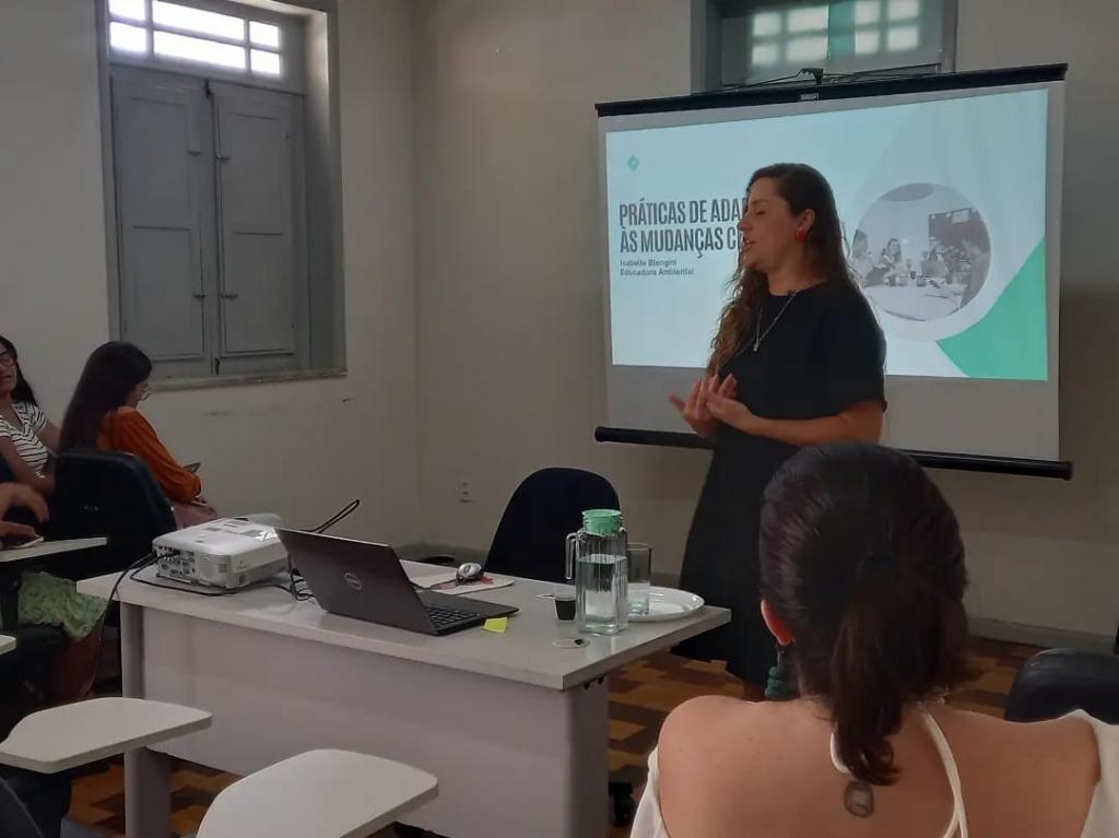 Com o tema "Práticas de Adaptação às Mudanças Climáticas", a palestra foi ministrada pela gerente de Educação Ambiental e Relações Sociais da Secretaria de Estado do Meio Ambiente, Sustentabilidade e Ações Climáticas (Semac), Isabelle Blengini. Para ela é louvável que a gestão esteja atenta às questões relativas ao meio ambiente. "Tivemos no curso pessoas especializadas em adaptação climática, que podem contribuir muito dentro da gestão ambiental nessa temática. Espero que possamos estar sempre juntos buscando fortalecer a questão ambiental", disse.