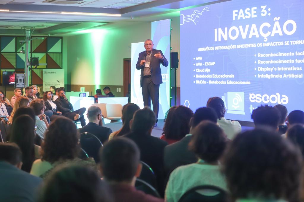 O secretário destacou, ainda, que a cidade de Aracaju tem ganhado um protagonismo cada vez maior no que diz respeito ao processo de modernização da educação. “O Escola Tech também promove a apresentação do mundo de novas possibilidades através de um conjunto de soluções tecnológicas que foi pensada a partir de um planejamento estratégico e fruto de muito diálogo com especialistas, tanto da área de educação como da área de tecnologia”, afirmou ao detalhar o pacote de inovações que com o compõem o Escola Tech, como a disponibilização de displays interativos de 75 polegadas em todas as salas de aula, a entrega de um computador para cada um dos mais de 25 mil estudantes do ensino fundamental e da educação de jovens e adultos, a instalação de totens de reconhecimento facial para o registro da presença do aluno na aula, bem como a utilização da inteligência artificial nos processos pedagógicos.