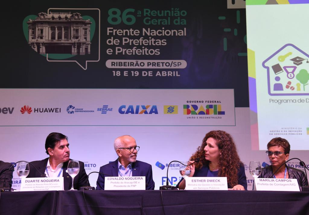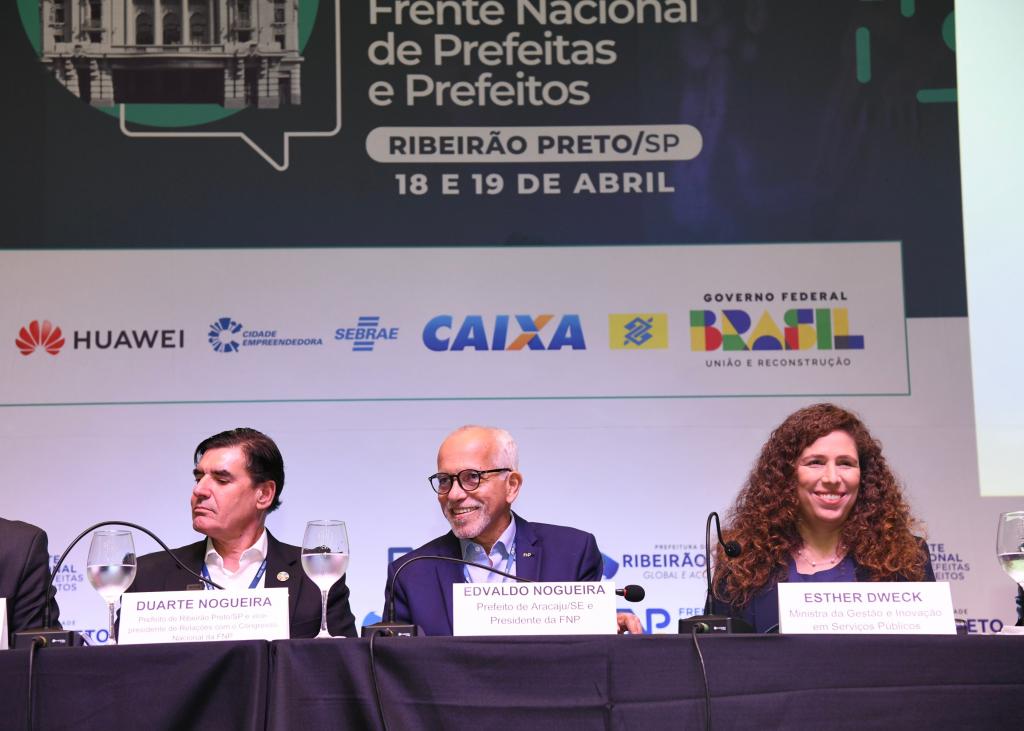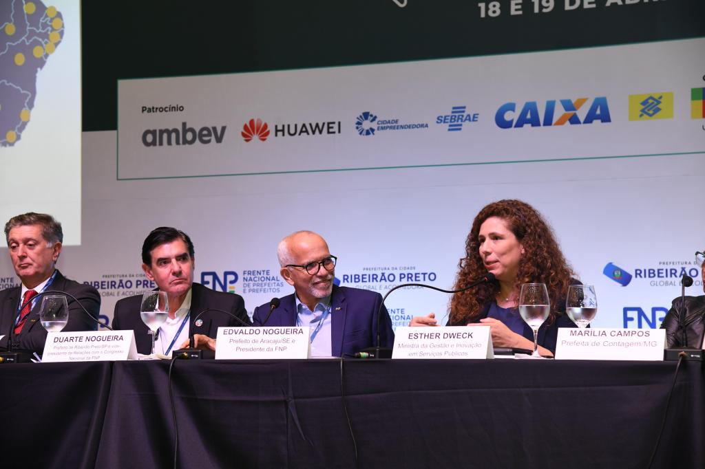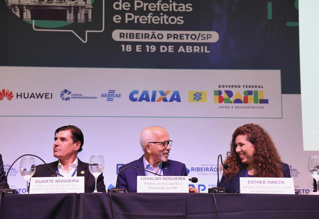 Durante a 86ª Reunião Geral da Frente Nacional de Prefeitos (FNP), que acontece nesta quinta e sexta-feira, 18 e 19, em Ribeirão Preto (SP), o presidente da entidade municipalista e prefeito de Aracaju, Edvaldo Nogueira, encontrou com a ministra da Gestão e da Inovação em Serviços Públicos (MGI), Esther Dweck. No evento, ela assinou convênios junto a alguns municípios referente ao “Imóvel da Gente”, o programa de Democratização de Imóveis da União, coordenado pela Secretaria do Patrimônio da União do MGI, lançado em fevereiro pelo Governo Federal. Aracaju é uma das cidades contempladas com o projeto, através do qual, serão cedidos ao município quatro espaços que pertencem à União.