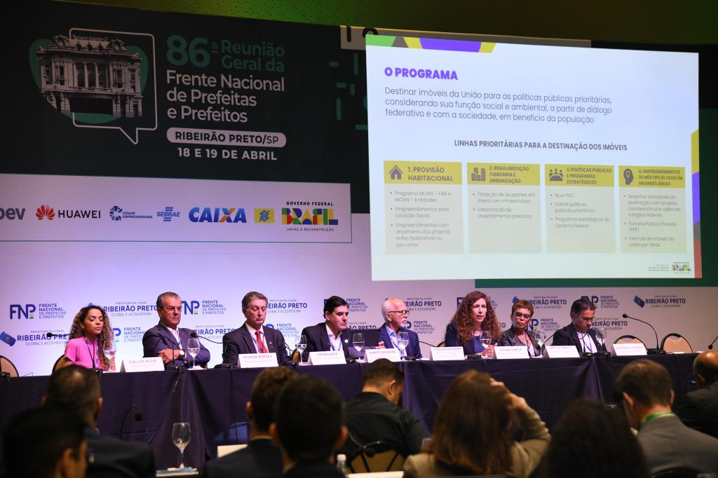 “Agradeço pelo convite para estar aqui na Reunião Geral da FNP, apresentando o programa. Essa é uma determinação do presidente Lula, de que a gente não pode ter imóvel da União que está sendo mal destinado, desocupado ou vazio. A população vê essa realidade, por isso, sabendo que tem muita gente que precisa de habitação, da regularização fundiária ou de equipamentos sociais, lançamos esse programa pelo Governo Federal. Esse é o objetivo que ele nos deu e é essa a missão que estamos cumprindo aqui nesse evento importante para todas as cidades brasileiras”, enfatizou.