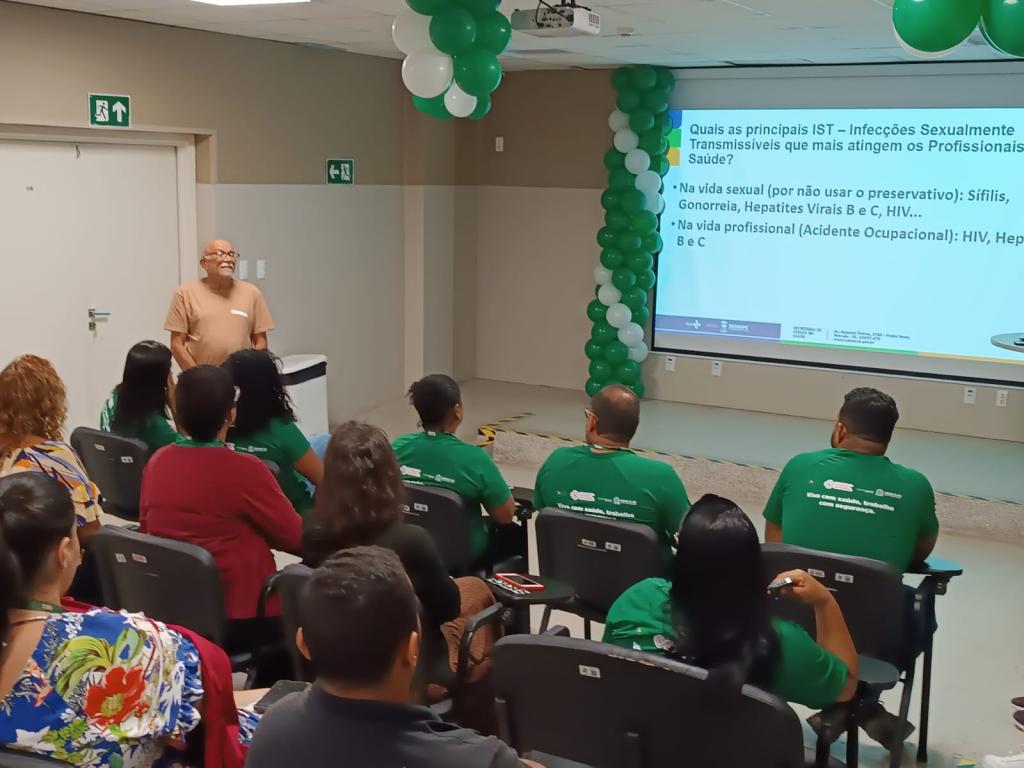 Na sequência, o médico sanitarista e coordenador do programa IST/AIDS da Secretaria de Estado da Saúde, Almir Santana, abordou os principais riscos inerentes aos profissionais de saúde em relação às IST´s, focando na questão de eventuais acidentes de trabalho.