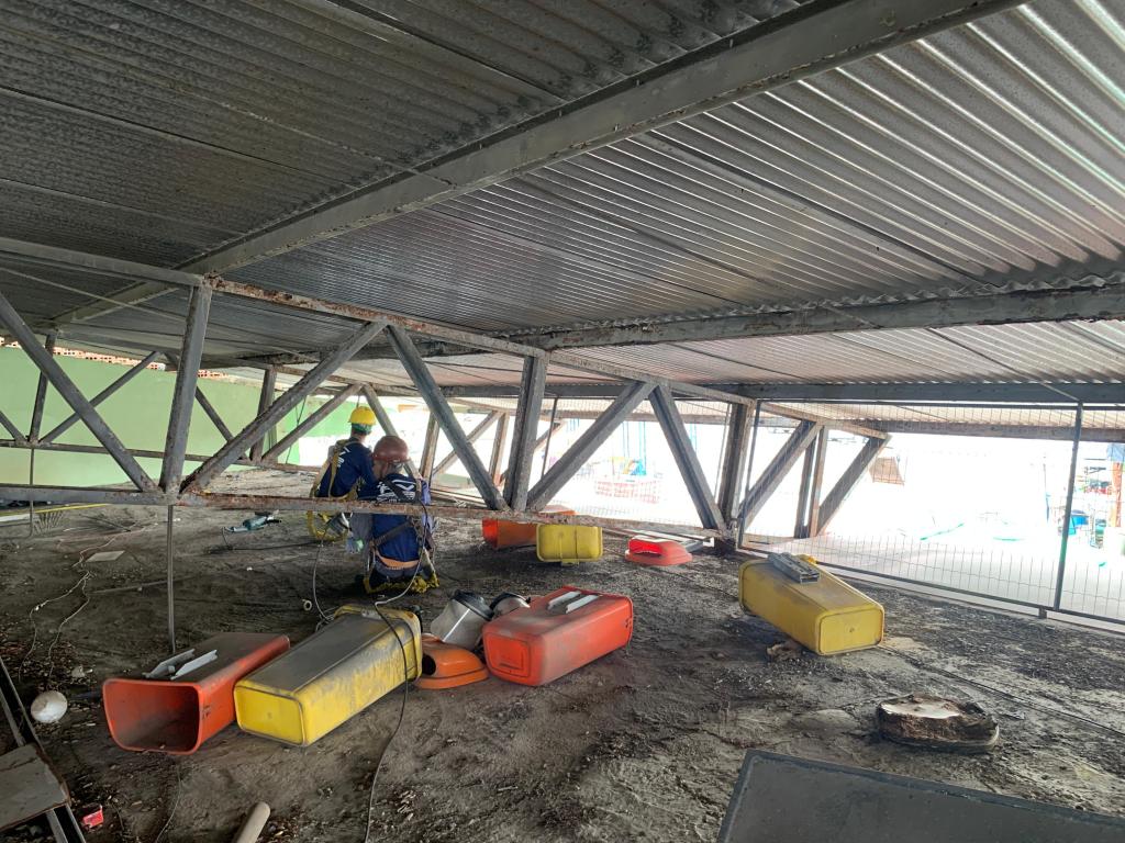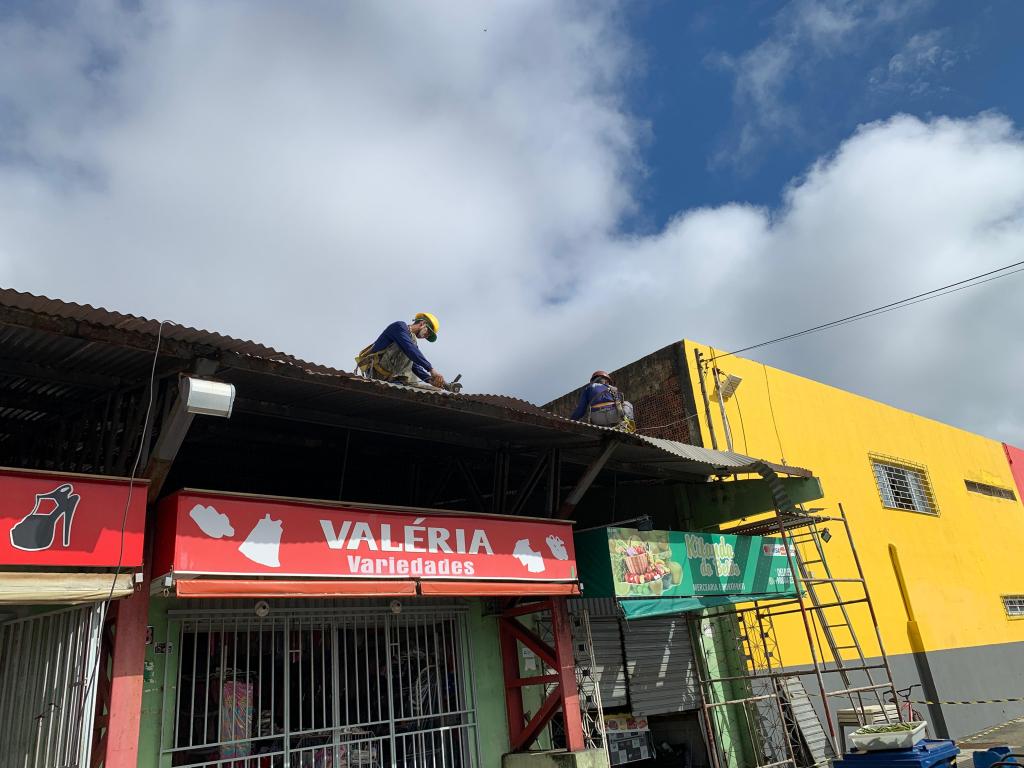 Os trabalhos incluem recuperação de uma parte da estrutura metálica que acomoda o telhado do centro comercial, bem como impermeabilização de alguns pontos da cobertura, além da substituição de vigas. Os serviços englobam ainda reparação dos banheiros masculino e feminino, com a substituição de acessórios sanitários, a exemplo de vasos, mictórios, torneiras e descargas.