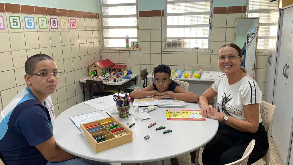 “Também trabalhamos com os professores na questão da adaptação das atividades e com toda a comunidade em si, porque, a partir do momento que o aluno entra na escola, ele é da escola toda. Ou seja, esse aluno vai ser atendido da forma correta pelo porteiro, pelos professores, as meninas do apoio, o pessoal da merenda e toda equipe diretiva. O atendimento tem duração de cinquenta minutos e é realizado duas vezes na semana, com o objetivo não só de desenvolver a aprendizagem, mas, também, a socialização e a autoestima”, informa.