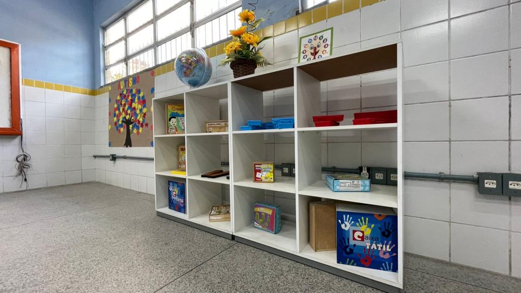 Uma das professoras do AAE na Emef, Simone Tadeu, frisa que por mais que o público-alvo apresente deficiências variadas, a maior parte dos estudantes assistidos pela SRM são autistas. Com uma sala repleta de recursos que facilitam a aprendizagem, os estudantes aprendem por meio de jogos pedagógicos e atividades direcionadas ao desenvolvimento cognitivo.