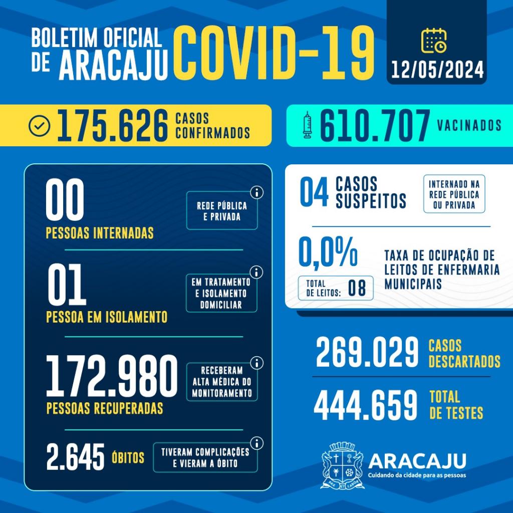 Com isso, 175.626 pessoas foram diagnosticadas com covid-19 em Aracaju. Destas, 172.980 que estavam infectados já estão recuperados e 2.645 vieram a óbito.