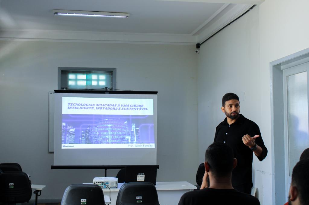Intitulada "Tecnologias aplicadas a uma cidade inteligente, inovadora e sustentável", a palestra foi ministrada pelo professor do Departamento de Computação da Universidade Federal de Sergipe (UFS), Gilton Ferreira, que é doutor em Ciência da Propriedade Intelectual. O objetivo foi mostrar diferentes maneiras de tornar uma cidade inteligente, de forma humanizada e priorizando o cidadão.