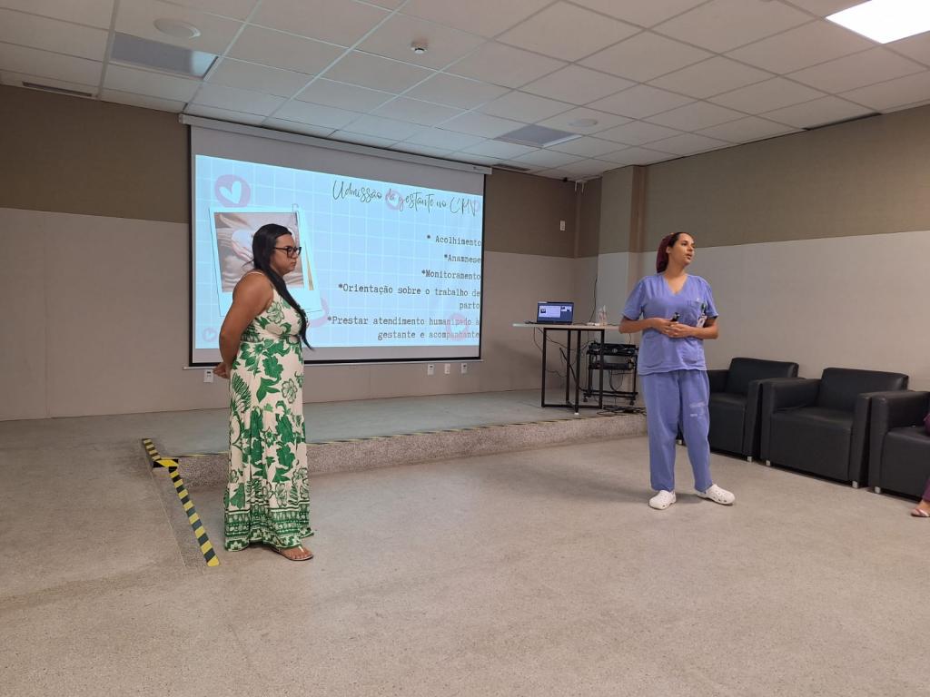 As enfermeiras obstetras Amanda Camilo e Thatyanny Ramony ministraram juntas a palestra intitulada “Enfermagem Obstetrícia e Neonatal: o papel dos enfermeiros no cuidado das gestantes, puérperas e recém-nascidos”.