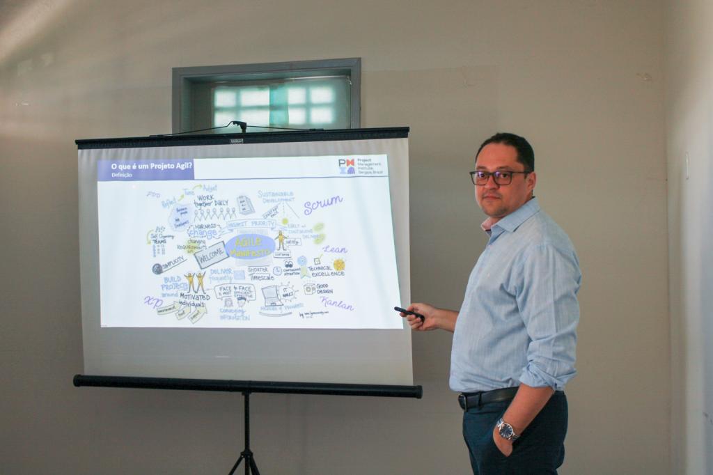 As estratégias para colocar as ideias em prática, além da gestão de projetos, foram o foco do curso. O ministrante César Ricardo reforça que as ideias, se não saírem do papel na forma correta, não têm impacto para a sociedade.