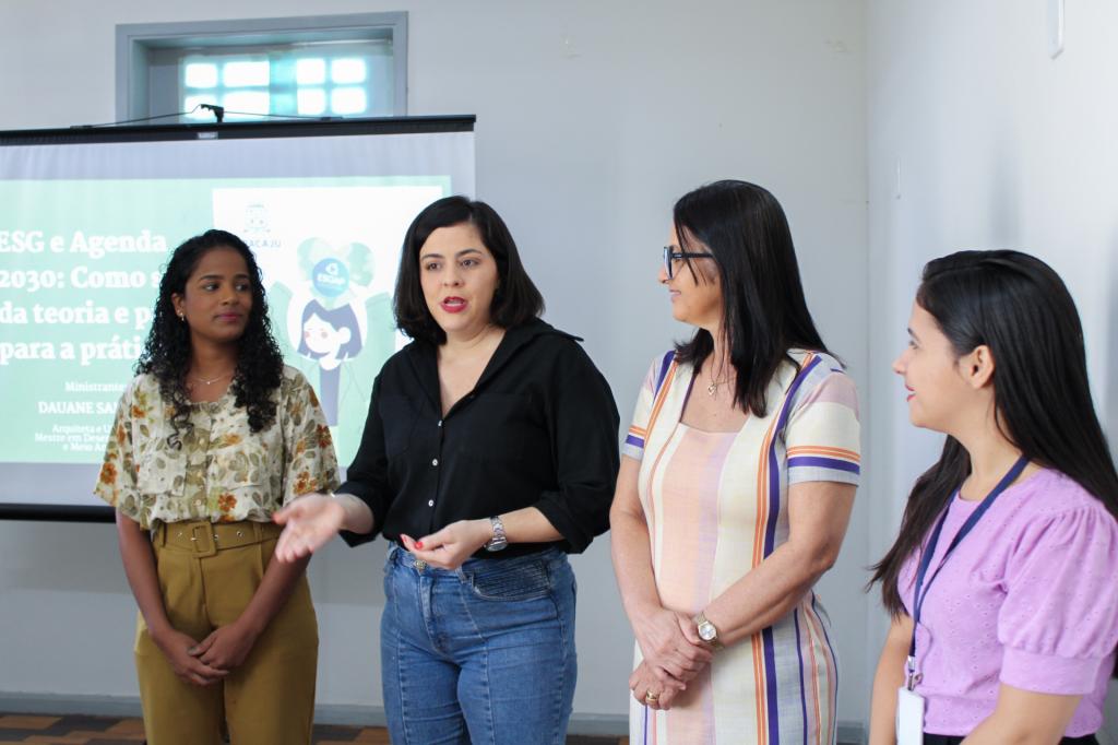 Com o tema "ESG e Objetivos de Desenvolvimento Sustentável da ONU: como sair da teoria e partir para a prática", a palestra foi ministrada pela arquiteta e urbanista Dauane Santana. Foram abordados conceitos sobre desenvolvimento sustentável e governança ambiental, além de exemplos de como cada pessoa pode fazer sua parte e colocar a teoria em prática de forma exitosa.