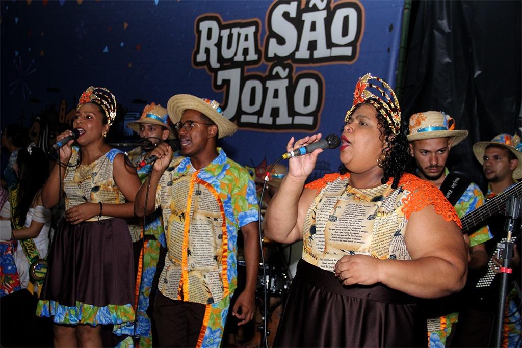 A Rua São João é um grande arraiá em forma de triângulo, não por acaso, é uma reverência visual ao forró, adornado com bandeirolas coloridas. Por volta das 20h30, em cada canto, ouvia-se, de longe, a batida da zabumba, o choro da sanfona e o tilintar do triângulo. O público, que já lotava as ruas adjacentes ao palco central, aguardavam ansiosos pelas apresentações.