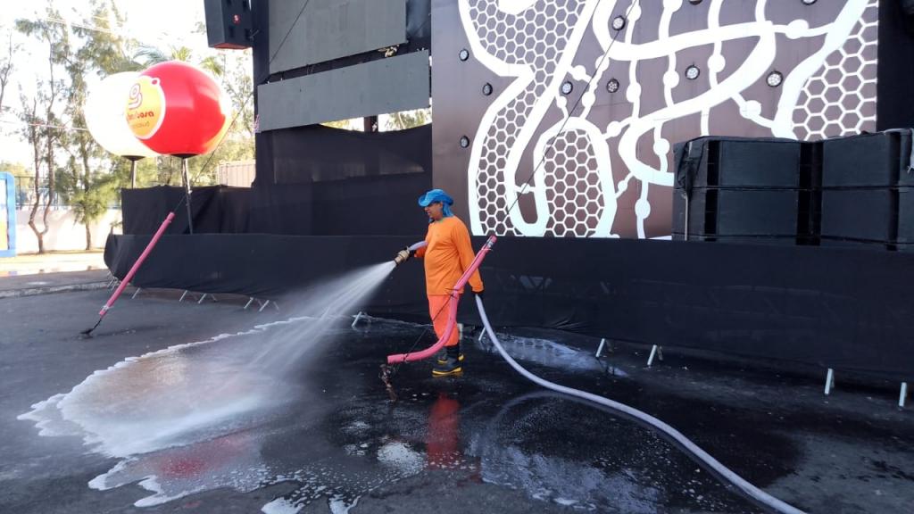 Para uma higienização mais completa, a Emsurb tem fornecido caminhões-pipa que fazem a lavagem dos espaços, como também dos banheiros químicos, bem como da área onde se concentram os shows. Além disso, o cronograma conta com um reforço de 66 agentes, atuando aos finais de semana e 44 durante a semana, o que serve para dar celeridade durante o período de maior circulação de pessoas. “Temos conseguido deixar toda a área da Orla livre de qualquer resíduo e pronta para receber os turistas e demais visitantes que passeiam pelo calçadão ou mesmo aqueles que seguem para as praias. Nossas equipes são mobilizadas para garantir que as áreas onde ocorrem os festejos estejam sempre limpas e organizadas, proporcionando um ambiente agradável e seguro para todos os participantes”, garante o presidente da Emsurb, Bruno Moraes.