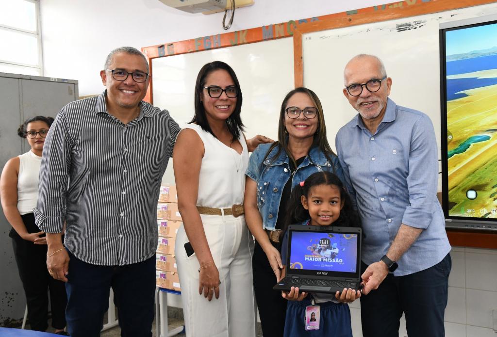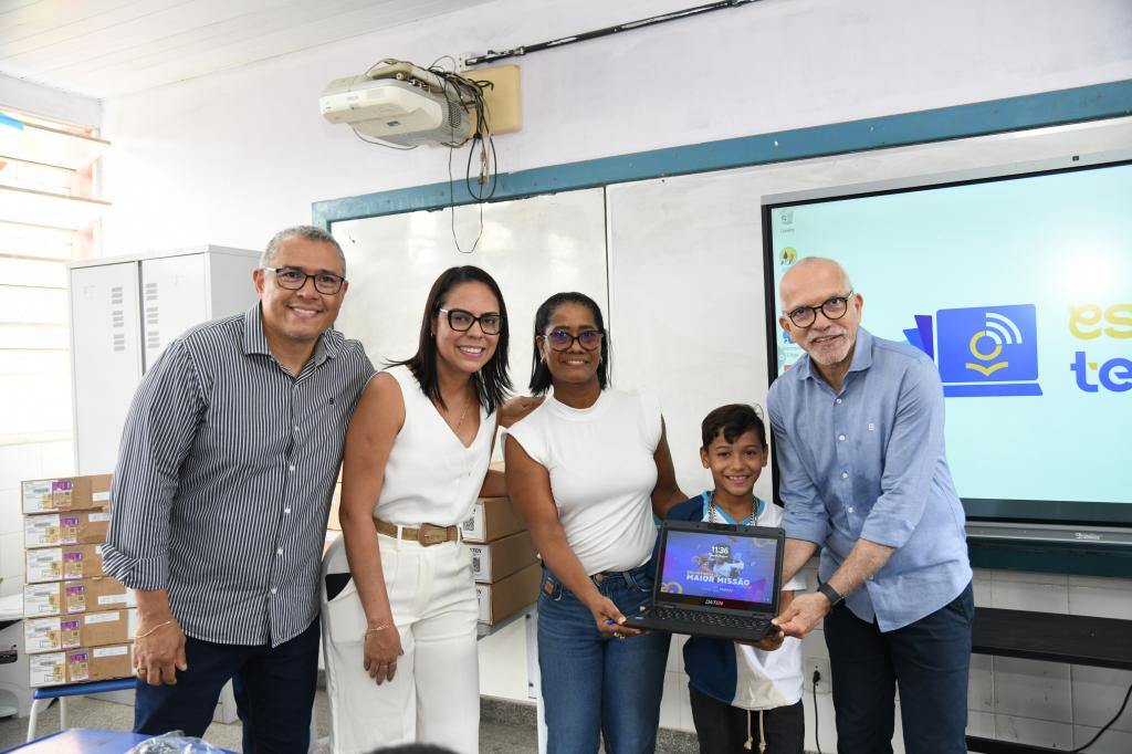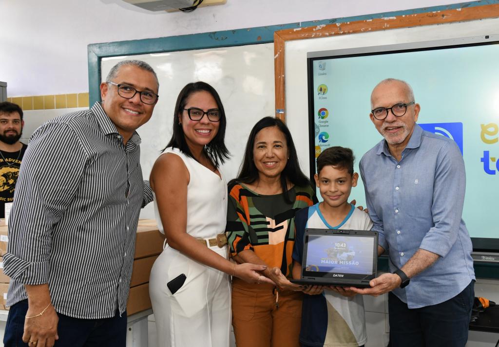 Mais 866 notebooks foram entregues, nesta quinta-feira, 20, pelo prefeito Edvaldo Nogueira aos alunos da Escola Municipal de Ensino Fundamental (Emef) Sérgio Francisco da Silva, no bairro Lamarão. Os equipamentos integram o programa Escola Tech, lançado em fevereiro deste ano, que consiste em um pacote tecnológico voltado para a inclusão digital no ambiente escolar. Mais de 7.500 notebooks, do total de 26 mil, já foram entregues para todos os alunos do ensino fundamental matriculados na rede pública de ensino. Na ocasião, o gestor da cidade destacou como a iniciativa melhora o aprendizado de todos os alunos da Educação do município.