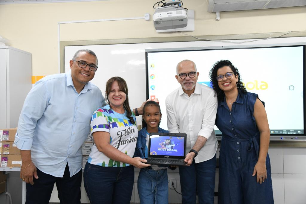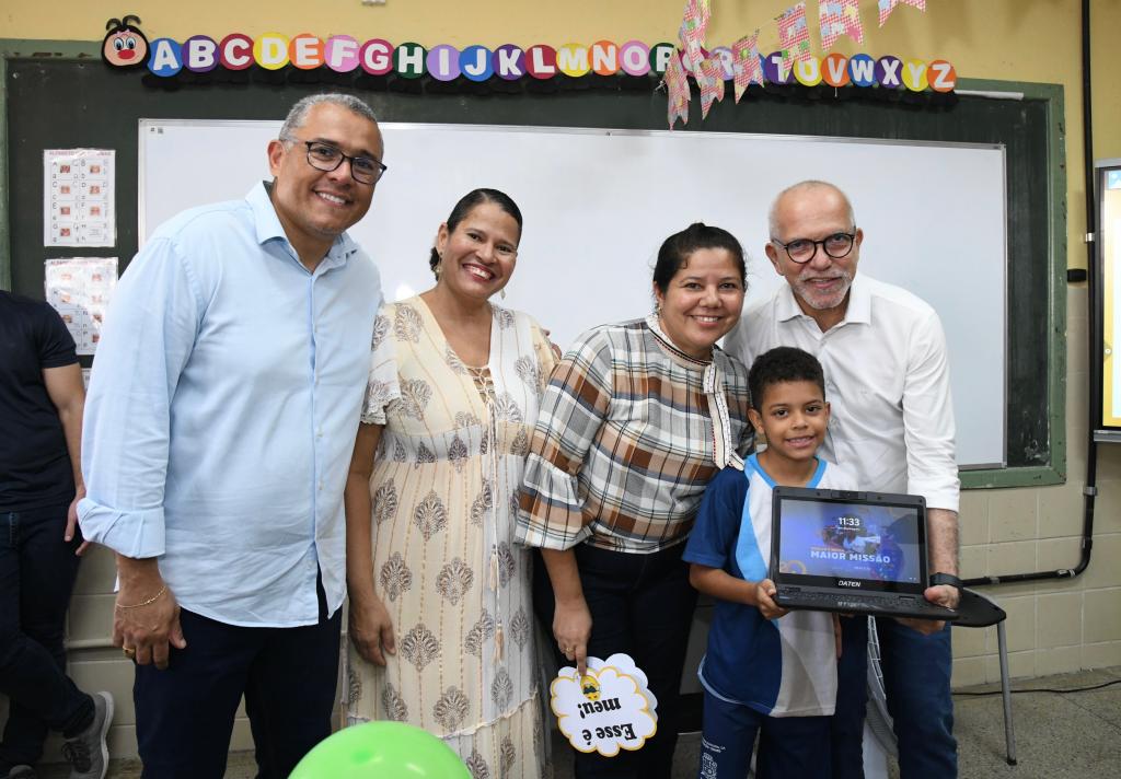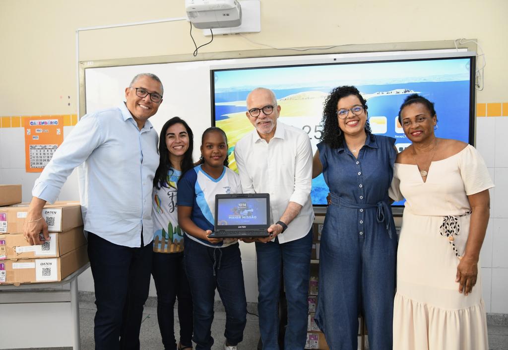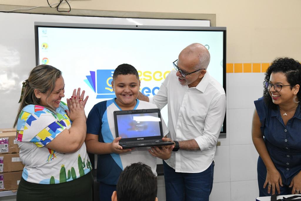 Dando continuidade a entrega dos notebooks que fazem parte do programa Escola Tech, da Educação de Aracaju, o prefeito Edvaldo Nogueira esteve nesta sexta-feira, 21, nas Escolas Municipais de Ensino Fundamental (Emef) Dr. Carvalho Neto, no bairro Novo Paraíso, e na Ministro Geraldo Barreto Sobral, no Dom Luciano, para entregar mais 954 dispositivos para os alunos. Foram entregues 630 aparelhos na primeira escola e os demais 324 na outra unidade de ensino. Para o gestor da cidade, as ações do Escola Tech têm sido um passo importante para a educação municipal, garantindo a ampliação do ensino e a democratização da tecnologia, tanto para os alunos como para seus familiares.