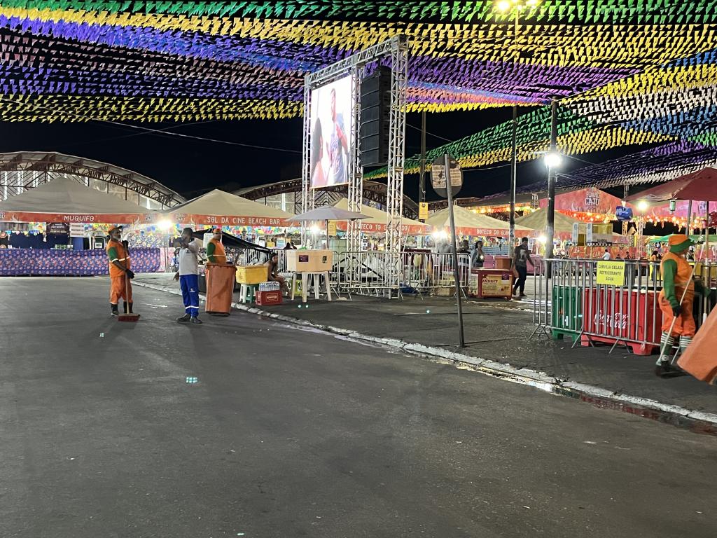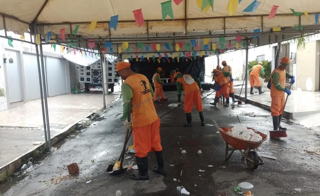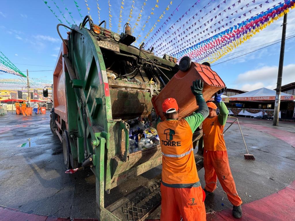 Desde o início de junho, quando as apresentações artísticas e culturais foram iniciadas no Arraiá do Povo e na Vila do Forró, promovidos pelo Governo do Estado, o suporte da gestão municipal resultou no recolhimento de mais de 100 toneladas de resíduos em 25 dias de festa, em razão do empenho de cerca de 90 agentes que se revezam entre atividades que envolvem a varrição e a coleta do lixo.