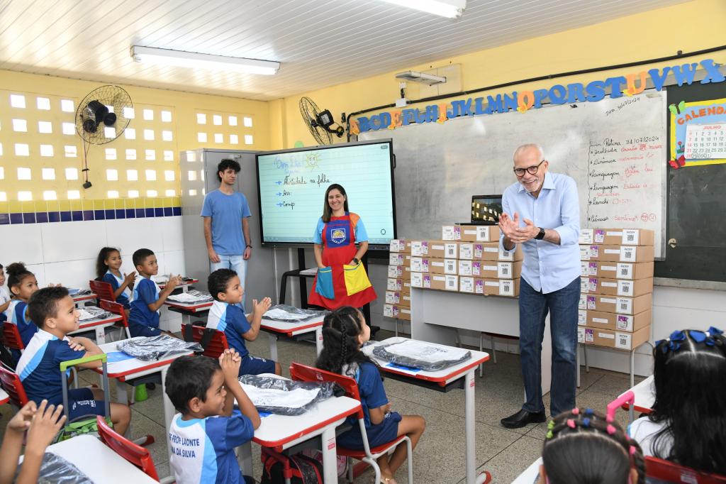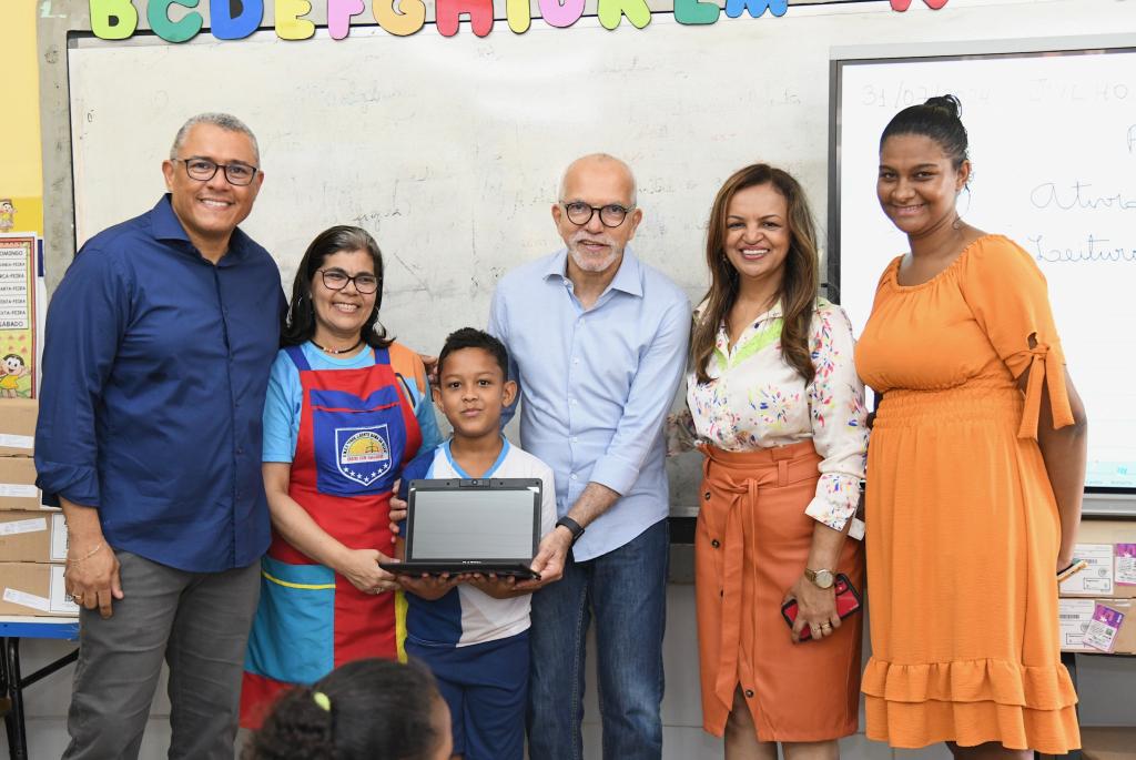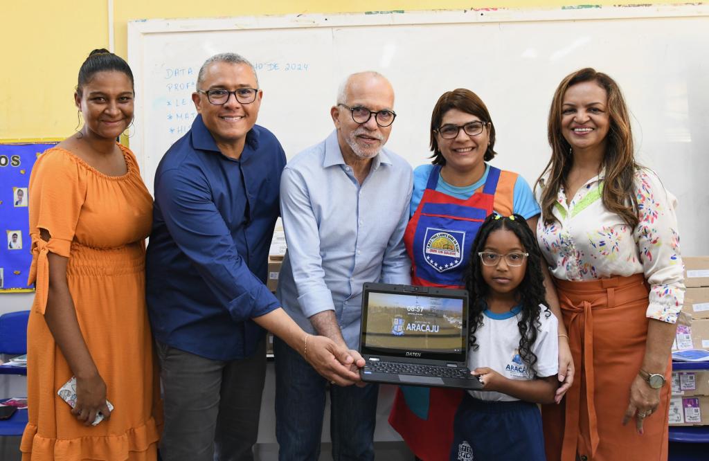 O prefeito Edvaldo Nogueira realizou, nesta quarta-feira, 31, a entrega de mais 770 notebooks na Escola Municipal de Ensino Fundamental (Emef) Laonte Gama, no bairro Santa Maria. A ação integra o programa Escola Tech, da Prefeitura de Aracaju, que está investindo no uso da tecnologia para o fortalecimento do processo de ensino-aprendizado no município. Esta é a primeira escola que recebe os equipamentos no segundo semestre do ano letivo de 2024. Ao todo, foram adquiridos pela gestão municipal 26 mil notebooks para serem distribuídos aos alunos através do projeto, que inclui a disponibilização de 800 displays interativos nas salas de aula, a instalação de câmeras com reconhecimento facial para registro em diário eletrônico, além do uso de sistemas de inteligência artificial nas unidades de ensino.
