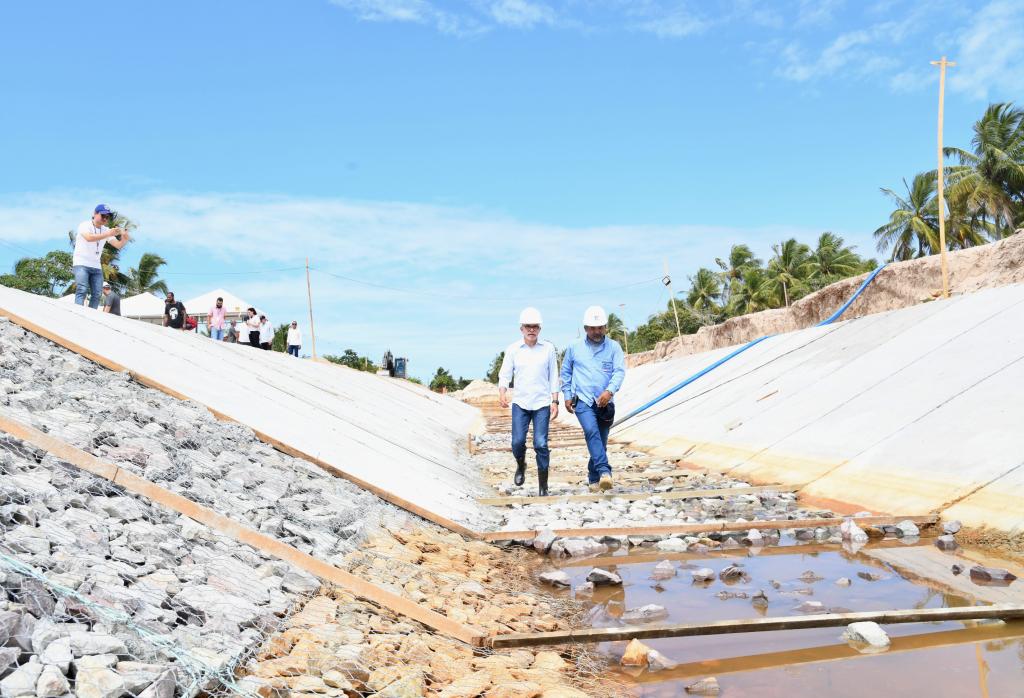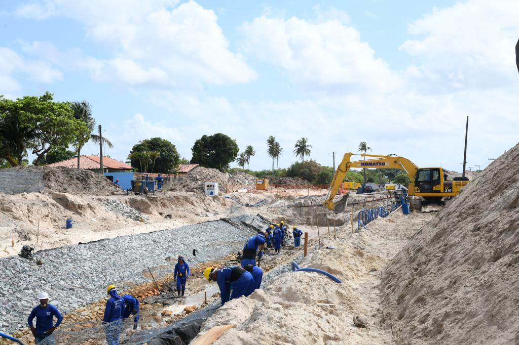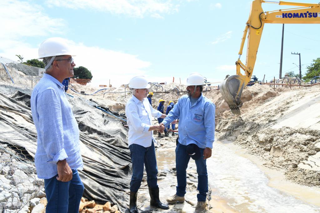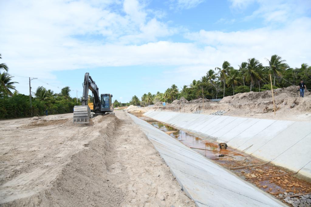 O prefeito Edvaldo Nogueira realizou nesta terça-feira, 10, uma visita às obras que estão sendo realizadas na zona de Expansão de Aracaju para a construção de um novo canal de macrodrenagem e uma avenida de 7,6 quilômetros de extensão entre os bairros da região. A intervenção contempla, ainda, a construção de outros 19 canais auxiliares, além da execução de serviços de infraestrutura e de esgotamento sanitário, beneficiando os bairros Areia Branca, Mosqueiro, Matapuã, Gameleira, São José dos Náufragos e Robalo. Ao todo, serão investidos R$ 165 milhões nas obras, a partir do projeto “Aracaju Cidade do Futuro” que está sendo financiado pelo Novo Banco de Desenvolvimento (NBD).