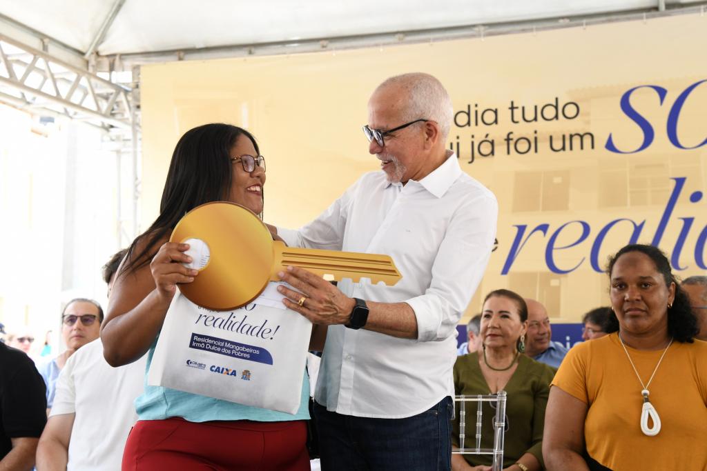 “Um barraco não é uma casa, não é lugar de ninguém morar. Ter uma oportunidade como essa, de receber a casa própria, é um momento único na vida da gente”. O relato de Andreza da Silva, mãe solo de 30 anos, reflete a realidade de centenas de famílias, que realizaram um sonho nesta sexta-feira, 27. O prefeito Edvaldo Nogueira entregou a primeira etapa do Residencial Mangabeiras Irmã Dulce dos Pobres, no bairro 17 de Março, contemplando 704 famílias com moradia digna. Erguido no local onde antes existia a antiga ocupação das Mangabeiras, o residencial conta, ao todo, com 1.320 casas, fruto de um investimento superior a R$ 124 milhões.