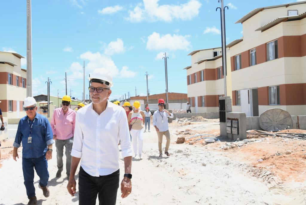 O prefeito Edvaldo Nogueira realizou, nesta quarta-feira, 23, uma inspeção às obras da avenida Perimetral Oeste, zona Norte da capital. O projeto engloba o Programa de Requalificação Urbana “Construindo para o Futuro”, e consiste na construção de uma grande avenida na cidade, passando pelos bairros Lamarão, Soledade, Bugio, Jardim Centenário e Santos Dumont, além da construção um novo conjunto habitacional, com 484 casas para as famílias que precisaram ser reassentadas, em virtude da construção da nova via. Ao todo, o projeto soma um investimento superior a R$ 250 milhões, fruto do financiamento firmado entre a gestão municipal e o Banco Interamericano de Desenvolvimento (BID).