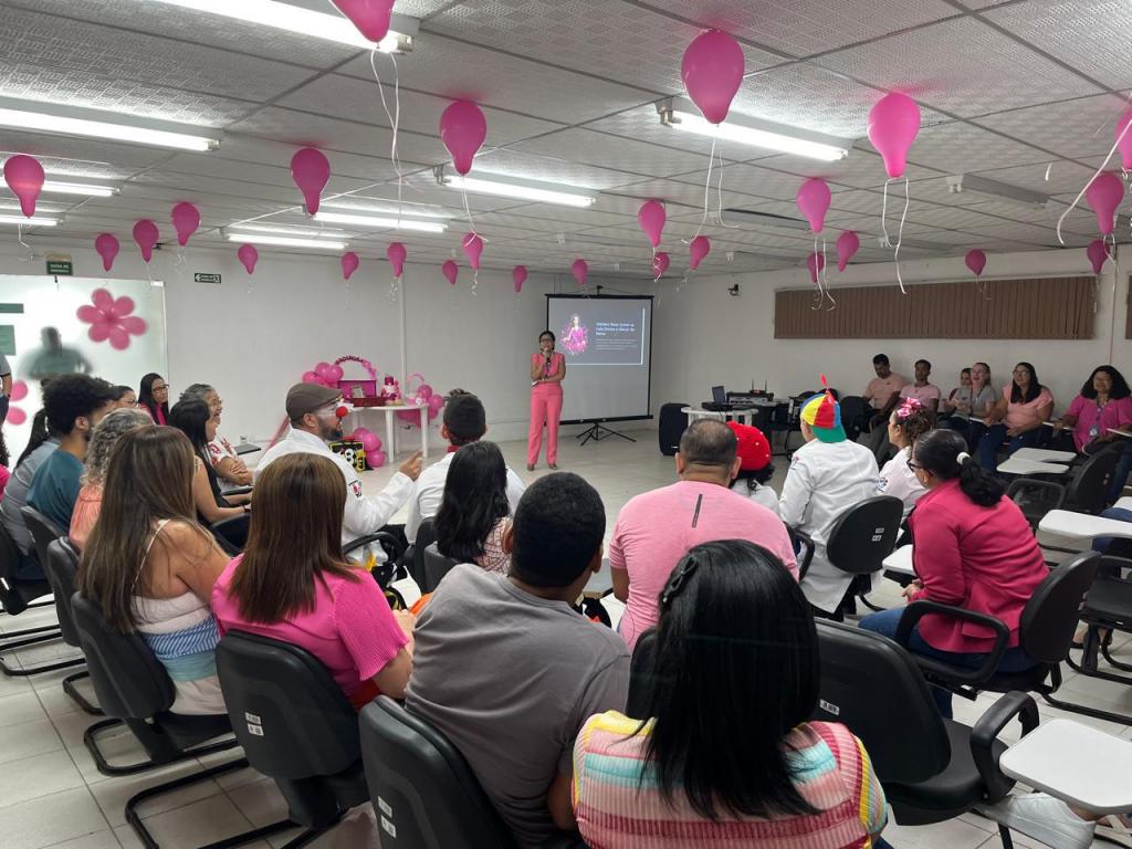 O Pink Day foi iniciado com a palestra da médica e referência técnica Daniele Moises, ressaltando a importância dos profissionais da saúde, em uma rede de assistência multidisciplinar, interligada, e que possa acolher as mulheres nas diversas fases do tratamento.