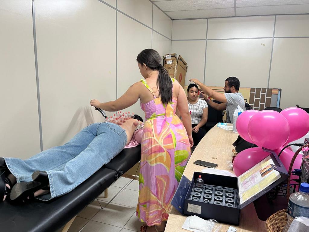 “Realizamos alongamentos com o Programa Academia da Cidade - PAC, recebemos o trabalho dos voluntários do grupo Palhaços de Propósito, que são os palhaços doutores, dedicados a trazerem o riso e a alegria ao cotidiano de quem frequenta as Unidades de Saúde, fazendo a diferença e ajudando na superação de dificuldades dos pacientes. Além disso, tivemos a oferta e aplicação das Práticas Integrativas e Complementares em Saúde – PICs, com as modalidades de auriculoterapia e ventosaterapia”, ressalta Vanessa.