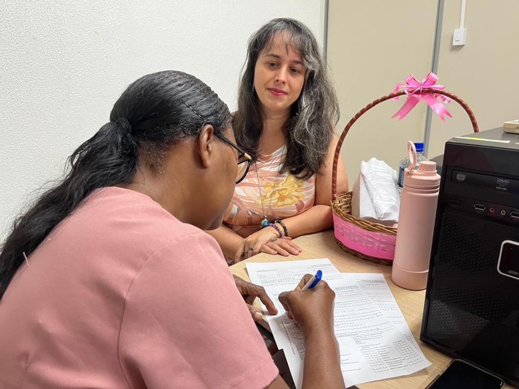 Também foi ofertado neste Pink Day, para as servidoras entre 50 e 69 anos, o exame clínico das mamas e, caso fosse necessário, a solicitação da mamografia. A servidora Chenya Coutinho participou da ação e relatou que nunca fez a mamografia, mesmo já estando na fase de rastreio, porque sua mãe teve câncer de mama.