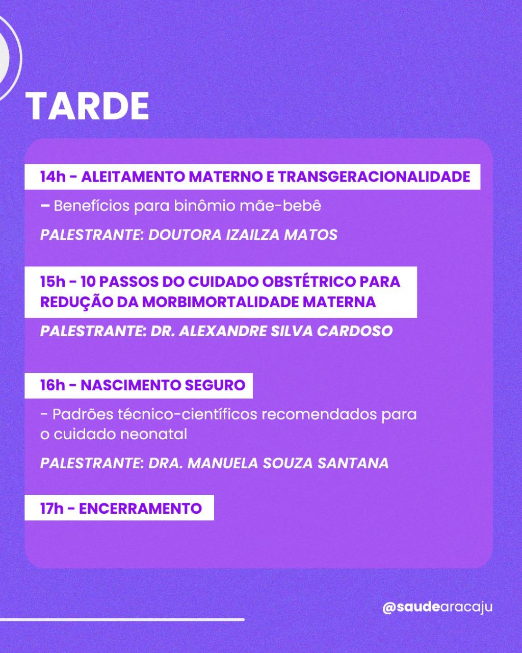 15h – Palestra com o médico Alexandre Silva Cardoso “10 Passos do cuidado obstétrico para redução da morbimortalidade materna”;