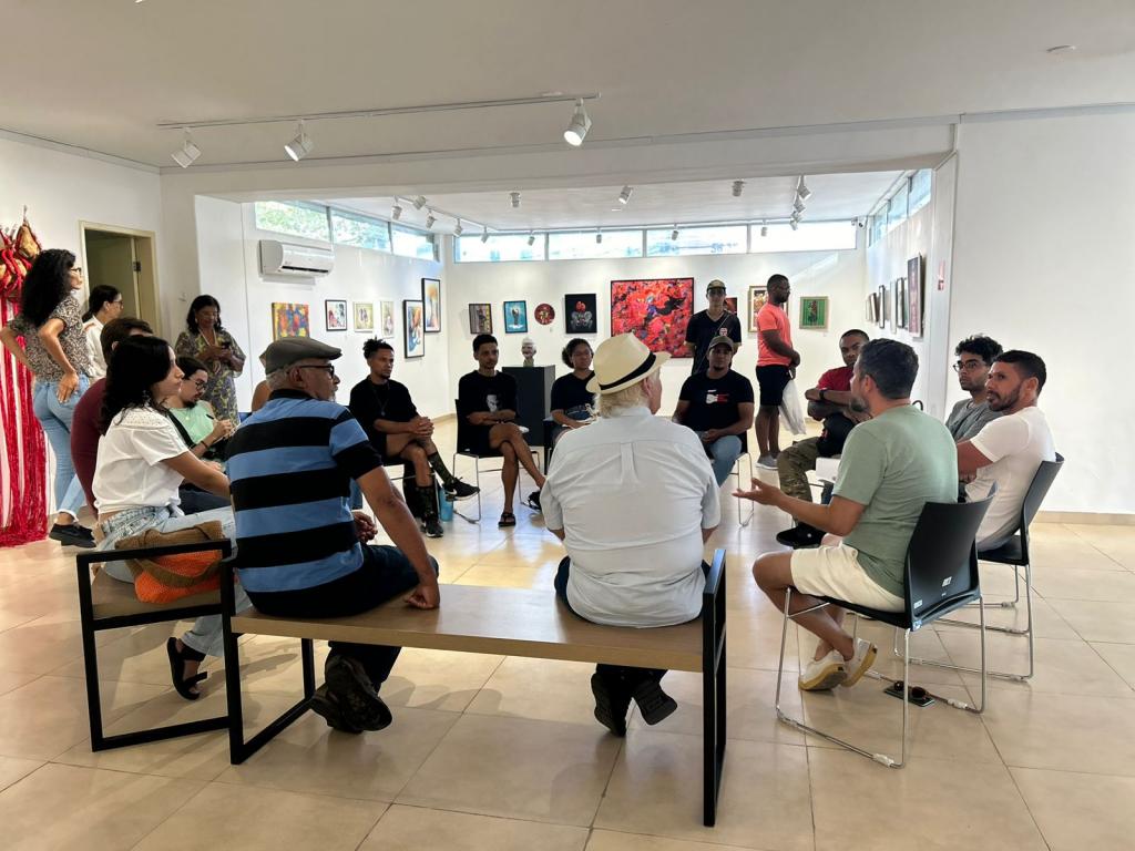 A roda de conversa foi realizada com a proposta de promover um espaço de diálogo entre novos nomes e artistas experientes, a fim de gerar trocas geracionais de conhecimento. O momento também proporcionou a reflexão sobre o papel da Galeria de Arte Álvaro Santos, bem como do Salão dos Novos, no fomento das artes visuais e na promoção da visibilidade aos artistas.