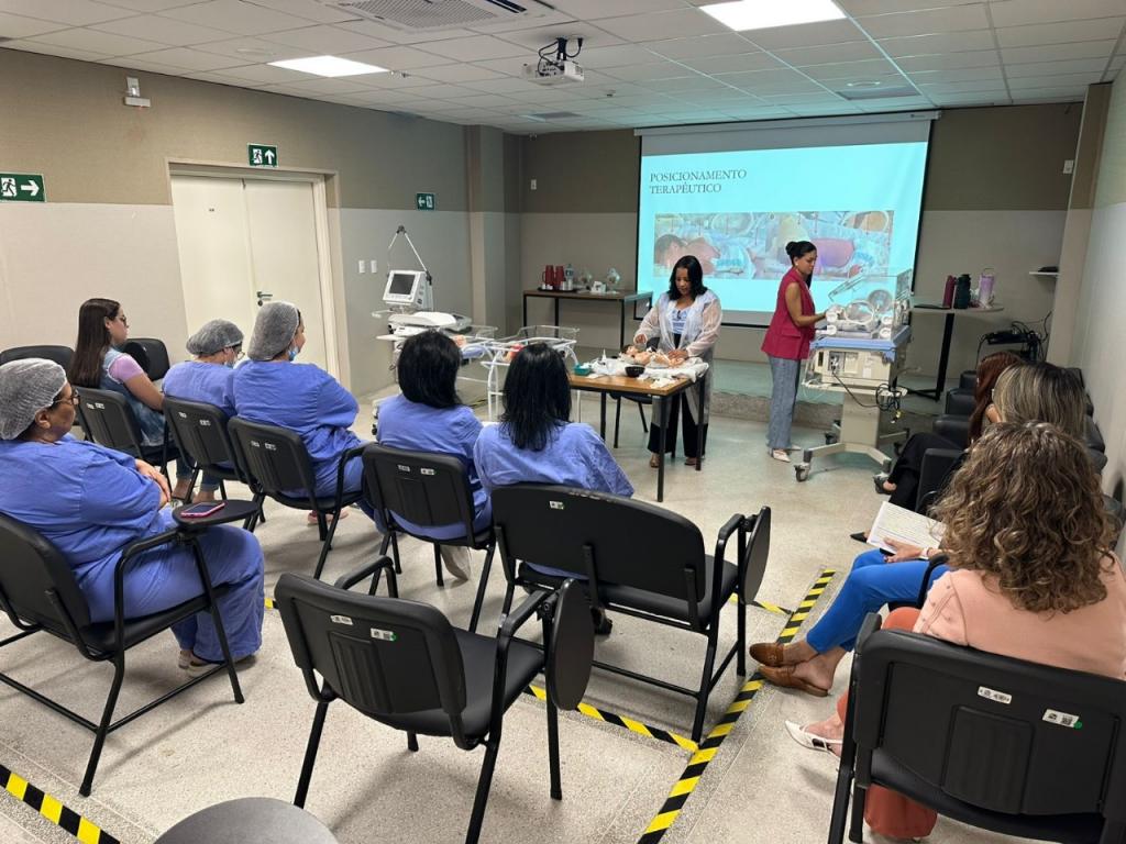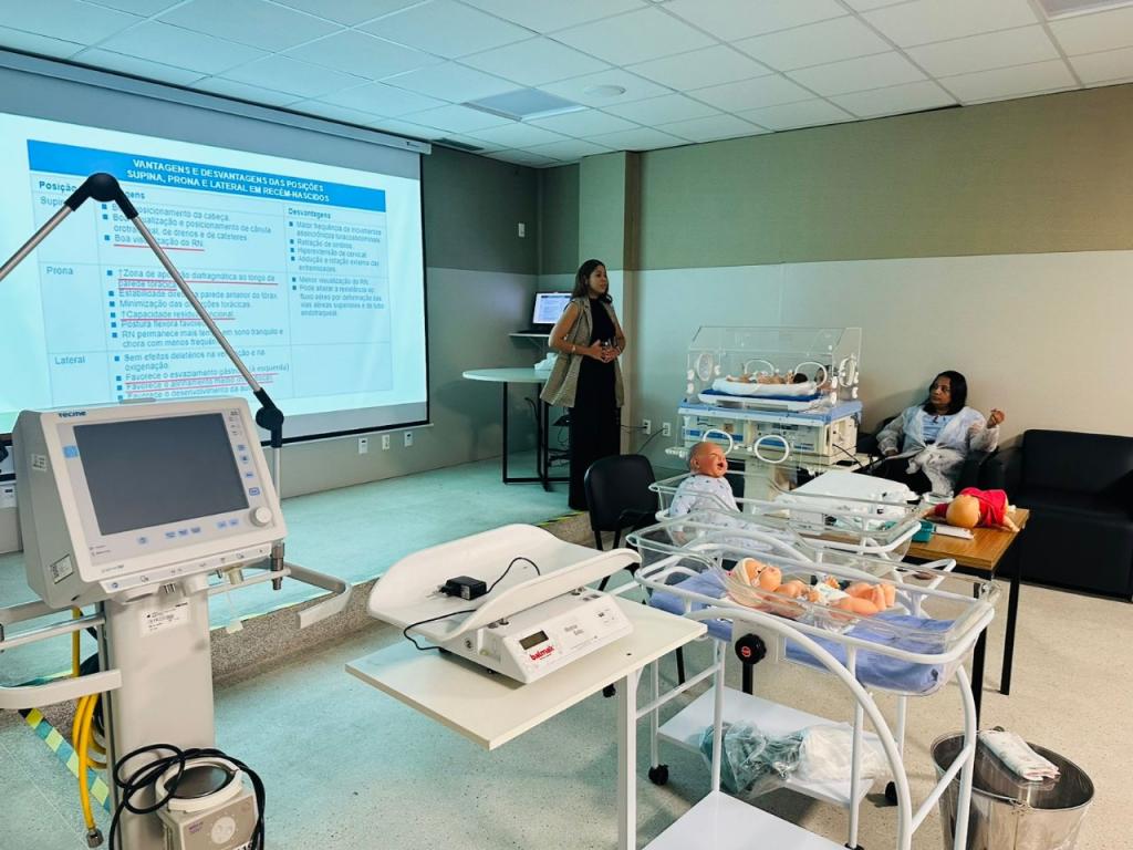 A capacitação também incluiu oficinas práticas, que reforçaram a importância do trabalho em equipe e do cuidado baseado em evidências. Para Larissa Farias Pires, enfermeira responsável pelo Núcleo de Educação Permanente (NEP) da maternidade, a formação dos profissionais é essencial para prevenir complicações e promover o bem-estar dos prematuros.