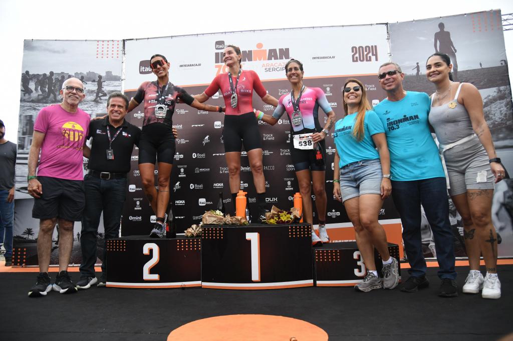 Ariele Monticeli (SP) foi a primeira atleta feminina a cruzar a linha de chegada, após 4h35min. Logo em seguida, Larissa Mayara Oliveira (MG) e Paula Zamboni (RJ) também garantiram o pódio, com o segundo e terceiro lugar, respectivamente. Para a grande campeã, que não participava de competições há sete anos, a prova foi divertida, mas o principal diferencial do IronMan 70.3 em Aracaju foi a torcida do público.