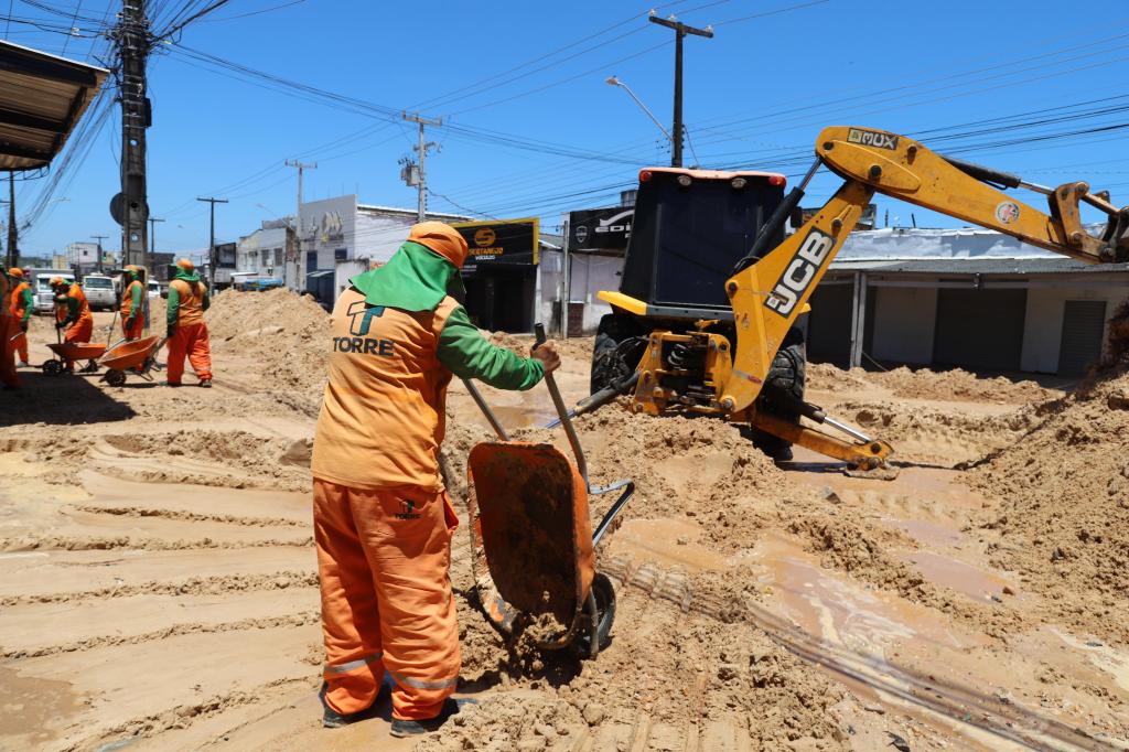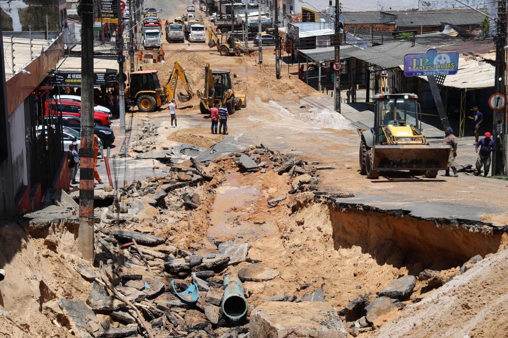 Equipes da Deso trabalham intensamente na troca da adutora rompida e na retirada dos materiais que colapsaram. Enquanto isso, a Emsurb mantém em atuação seis equipes com 66 trabalhadores, além de seis caminhões, para a limpeza das ruas e dos estabelecimentos comerciais atingidos pela lama.