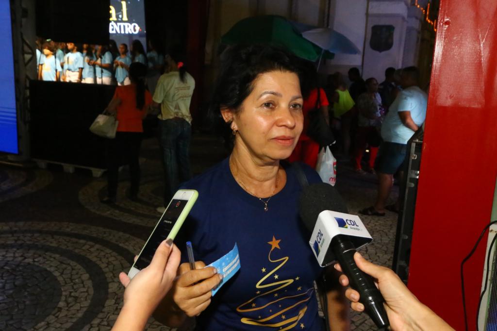 Como parte da programação de abertura, o público pode apreciar a apresentação do Coral Canarinhos, ecoando cânticos pelos calçadões do Centro da cidade. Além disso, a CDL promoveu o sorteio de um prêmio de R$ 1 mil entre as pessoas que fizeram compras nesta sexta-feira, 6. O secretário Jorge Fraga, encarregado de retirar o nome premiado, foi o mediador para que Zildete Gusmão subisse ao palco feliz pela sorte inédita. “Nunca ganhei nada, é a primeira vez. O Natal Iluminado ficou muito bom, deu uma movimentada muito boa no Centro, o pessoal tem que vir mais para o Centro porque é bem seguro e tem policiamento todos os dias”, destacou a premiada.