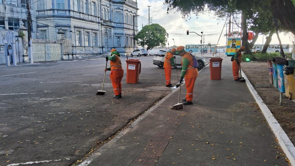 Para assegurar a limpeza das praças Fausto Cardoso, Almirante Barroso e Olímpio Campos, onde estão montadas as peças decorativas do Natal Iluminado, cerca de 11 agentes atuam diariamente na atividade de varrição e lavagem todas as manhãs e outra equipe noturna faz a manutenção.