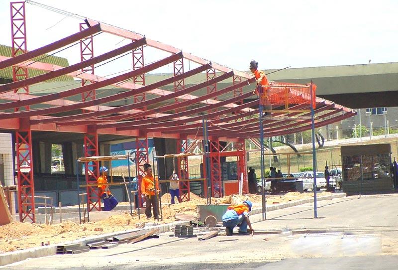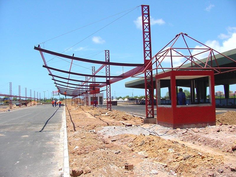 O novo Terminal de Integração da Zona Oeste que está sendo construído pela Prefeitura de Aracaju, através da SMTT, vai mostrando à população a sua grandiosidade com o passar dos dias. A obra que segue o cronograma estabelecido, quando pronta, dará conforto, segurança e comodidade ao usuário. A estrutura de sustentação da cobertura já está com 60% do seu total construída, o muro que contorna toda a área praticamente concluído, 50% de gradil prontos, drenagem, meio fio e base imprimida ultrapassaram os 80% e 20% de asfalto já colocados. Na próxima semana vão ser colocados os eletrodutos para iluminação e toda a posteação do terminal, além da pavimentação da plataforma de embarque e desembarque. Estão praticamente construídos os banheiros, fraldário, depósito, sala de fiscalização e lanchonete. De acordo com o projeto, estão sendo empregados na obra recursos próprios da ordem de R$ 1,5 milhão.