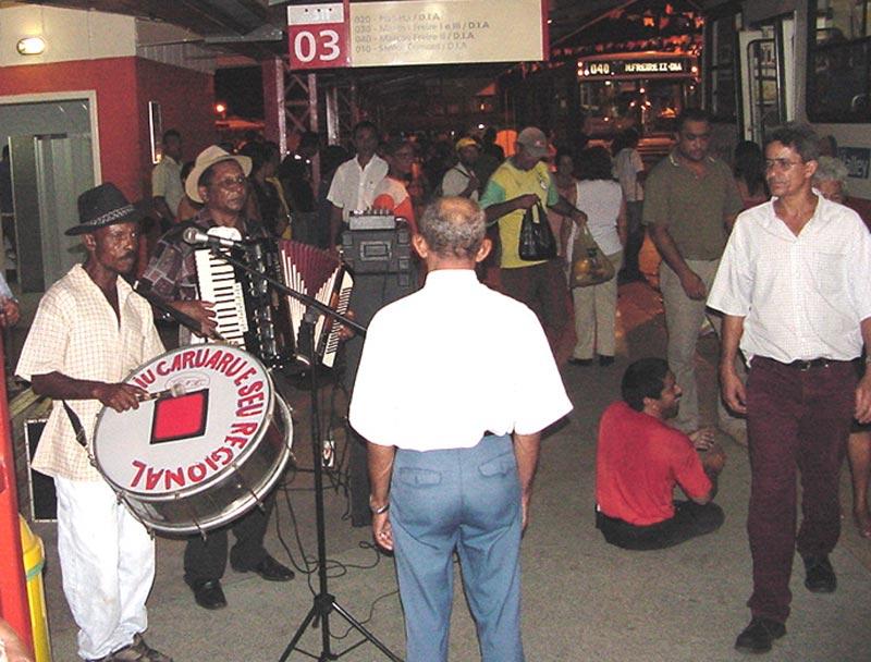 O clima junino continua em todos os Terminais de Integração gerenciados pela Superintendência Municipal de Transportes e Trânsito (SMTT). Como aconteceu durante a semana que antecedeu o São João, trios de forró pé-de-serra voltam a fazer a festa nos Terminais amanhã, 28, e quarta-feira, 29, comemorando o São Pedro. O usuário aprovou a iniciativa da SMTT. “Anima e deixa a gente descontraída”, disse Marluce Tavares, 32 anos, usuária da linha Sanatório/DIA. “Fiquei um pouquinho no terminal para ouvir o sanfoneiro tocar essas músicas lindas de Luís Gonzaga, é uma beleza”, completa. Já Antônio Pádua da Purificação, 67, disse que a prefeitura está de parabéns pela idéia de forró nos terminais de ônibus. “Isso anima a gente e essas músicas do São João antigo bolem comigo e me trazem muitas recordações”, frisou. O Forró nos Terminais de Integração acontecerá a partir das 16h30.