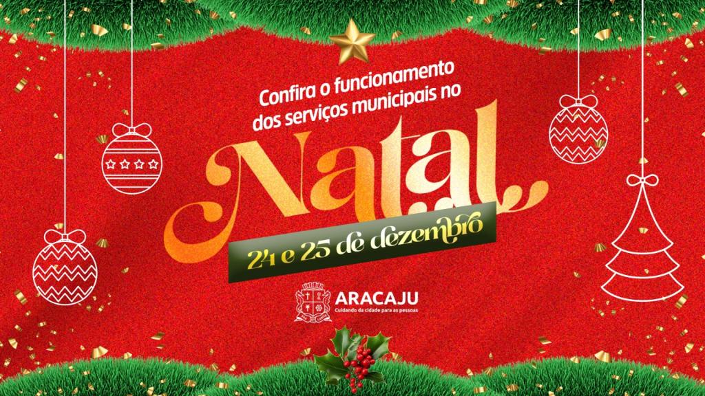 Em virtude do ponto facultativo nesta terça-feira, dia 24, e do feriado do Natal, dia 25, alguns serviços municipais sofrem alteração nestas datas. Com exceção daqueles considerados essenciais, saiba como fica o funcionamento dos órgãos e serviços públicos de Aracaju.