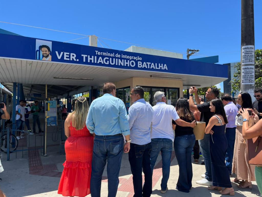 O terminal Zona Sul, localizado no bairro Atalaia, passa a ser denominado Terminal de Integração vereador Thiaguinho Batalha, conforme o projeto de lei Nº 18/2024, da Câmara Municipal de Aracaju, homenageando o ex-vereador Thiago Zacarias Batalha de Matos, que faleceu em 2023. A solenidade foi realizada nesta sexta-feira, 27, com a presença do superintendente de Transportes e Trânsito da capital, o tenente-coronel Sílvio Prado, parlamentares, familiares e amigos do homenageado.