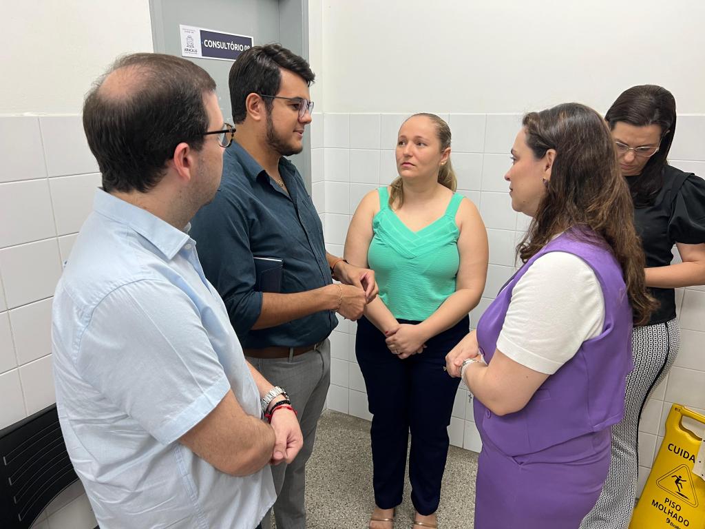 Como parte do plano de 100 dias, a equipe técnica e o corpo diretivo da SMS realizaram, nesta quarta-feira, 29, uma vistoria na Unidade de Saúde da Família (USF) Dona Sinhazinha, no bairro Grageru. O objetivo é identificar demandas prioritárias e acelerar soluções para otimizar os serviços oferecidos.