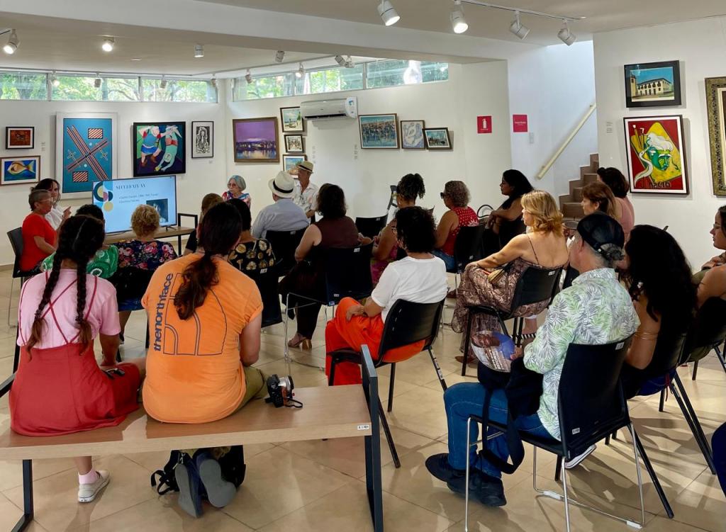 A professora Verônica Nunes, da área de museologia da Universidade Federal de Sergipe (UFS), também participou do encontro e ressaltou o impacto dessas discussões para a pesquisa acadêmica: “Quero agradecer pelo convite. Essas rodas de conversa da Galeria Álvaro Santos têm estimulado bastante a arte. Quem gosta de pesquisa, quando recebe um convite como esse, faz o possível para trazer o máximo de informações”.