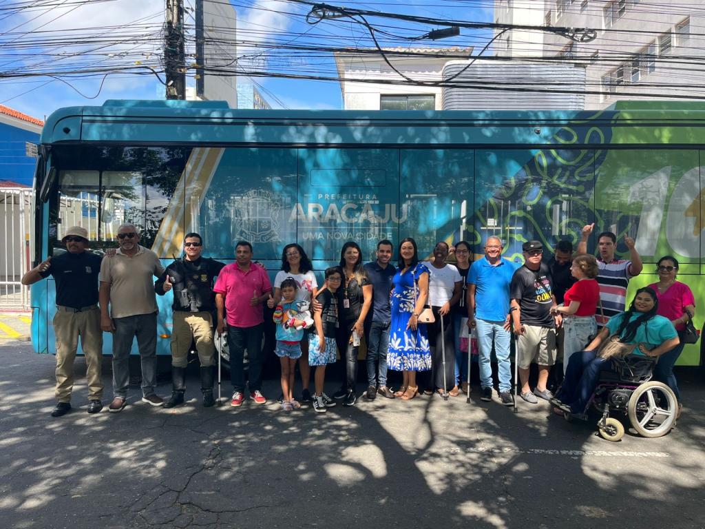 Membros do Conselho Municipal da Pessoa com Deficiência tiveram, neste sábado, 8, a oportunidade de conhecer o ônibus elétrico que circula pela capital, colocado para teste da população pela Prefeitura de Aracaju. A ação, conduzida pela Superintendência Municipal de Transportes e Trânsito (SMTT) de Aracaju, oportunizou aos convidados a chance de verificar se o veículo atende as necessidades e demandas das pessoas com deficiência. O passeio contou com a participação do diretor de Transportes Público da SMTT, Coronel Cruz, e do instrutor da empresa fabricante do ônibus, José Oliveira.