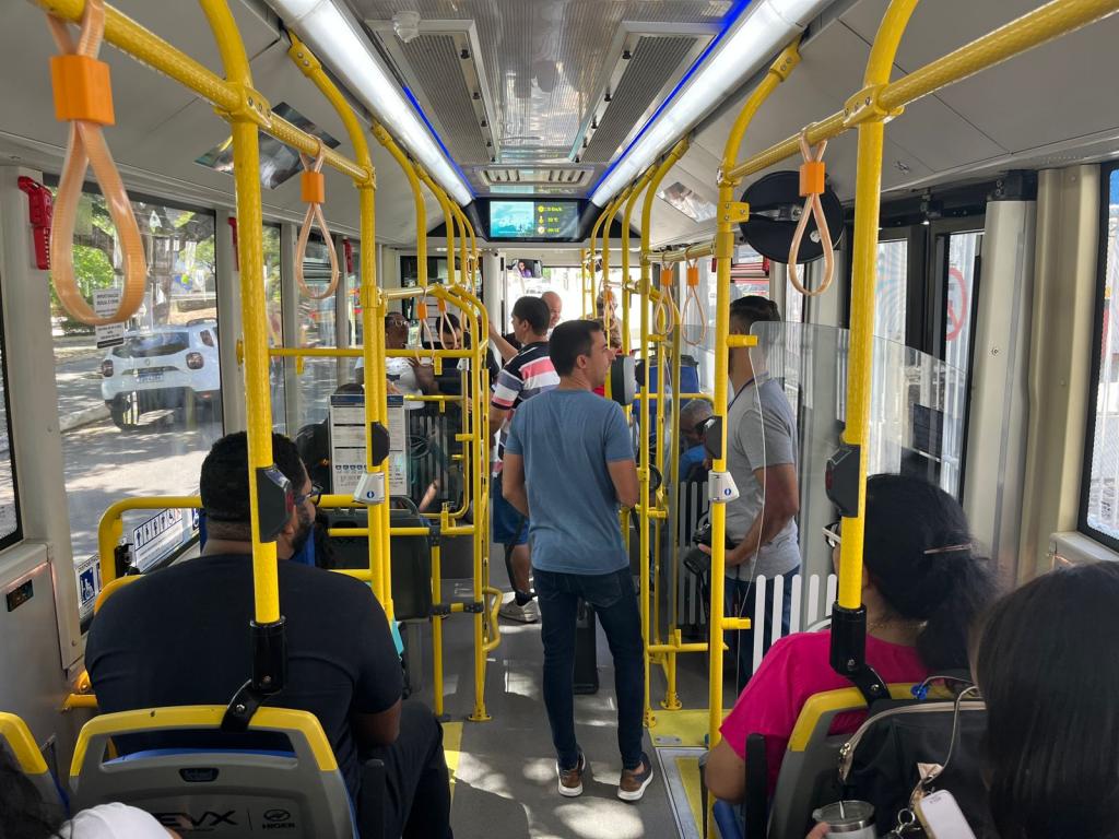 Ainda dentro do ônibus elétrico há um microfone e sistema de som, para que o motorista possa se comunicar com os passageiros. O veículo conta também com um monitor que mostra informações gerais sobre a viagem, como velocidade, temperatura interna, horário; e possui luzes de LED que tornam o ambiente mais agradável.