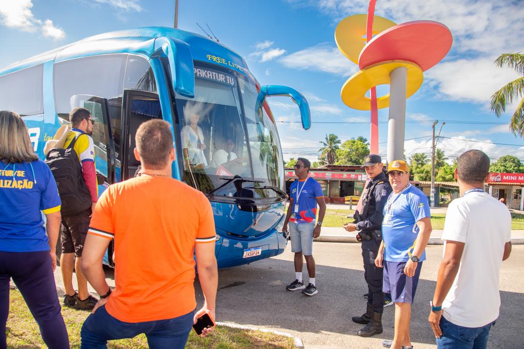 Na manhã de sábado, 8, a Secretaria Municipal do Turismo de Aracaju (Setur), em parceria com o Sindicato dos Guias de Turismo de Sergipe (Singtur/SE), a Guarda Municipal e o Procon de Aracaju, realizou uma ação de fiscalização e conscientização junto às empresas responsáveis pela recepção dos grupos de excursão.