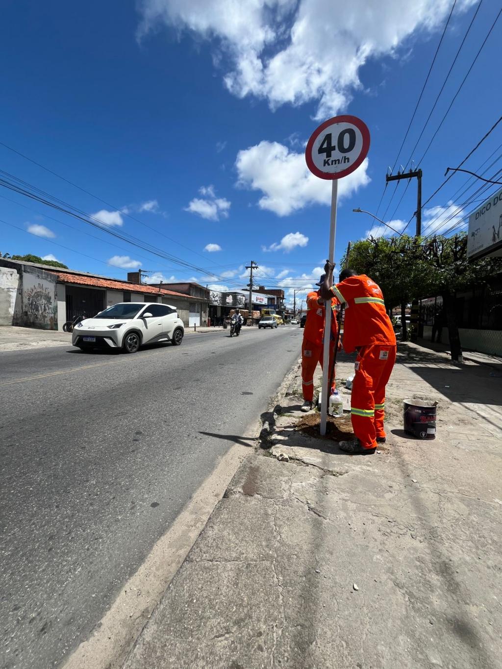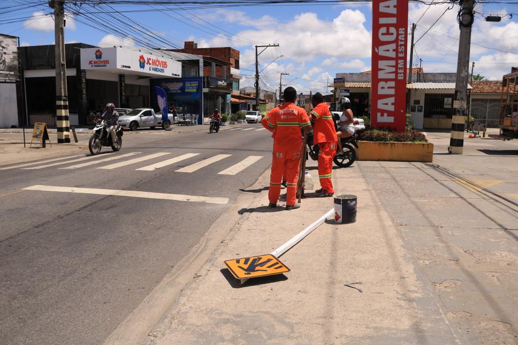 Na área, a equipe instalou duas placas de limite de velocidade, avisando que naquele trecho os condutores devem trafegar a, no máximo, 40 km/h; e duas placas que indicam a existência de uma faixa de travessia de pedestres. As placas foram instaladas nos dois sentidos da via. O objetivo é dar mais segurança e organização no fluxo de veículos no local, para que se reduza ao máximo a ocorrência de sinistros no local.