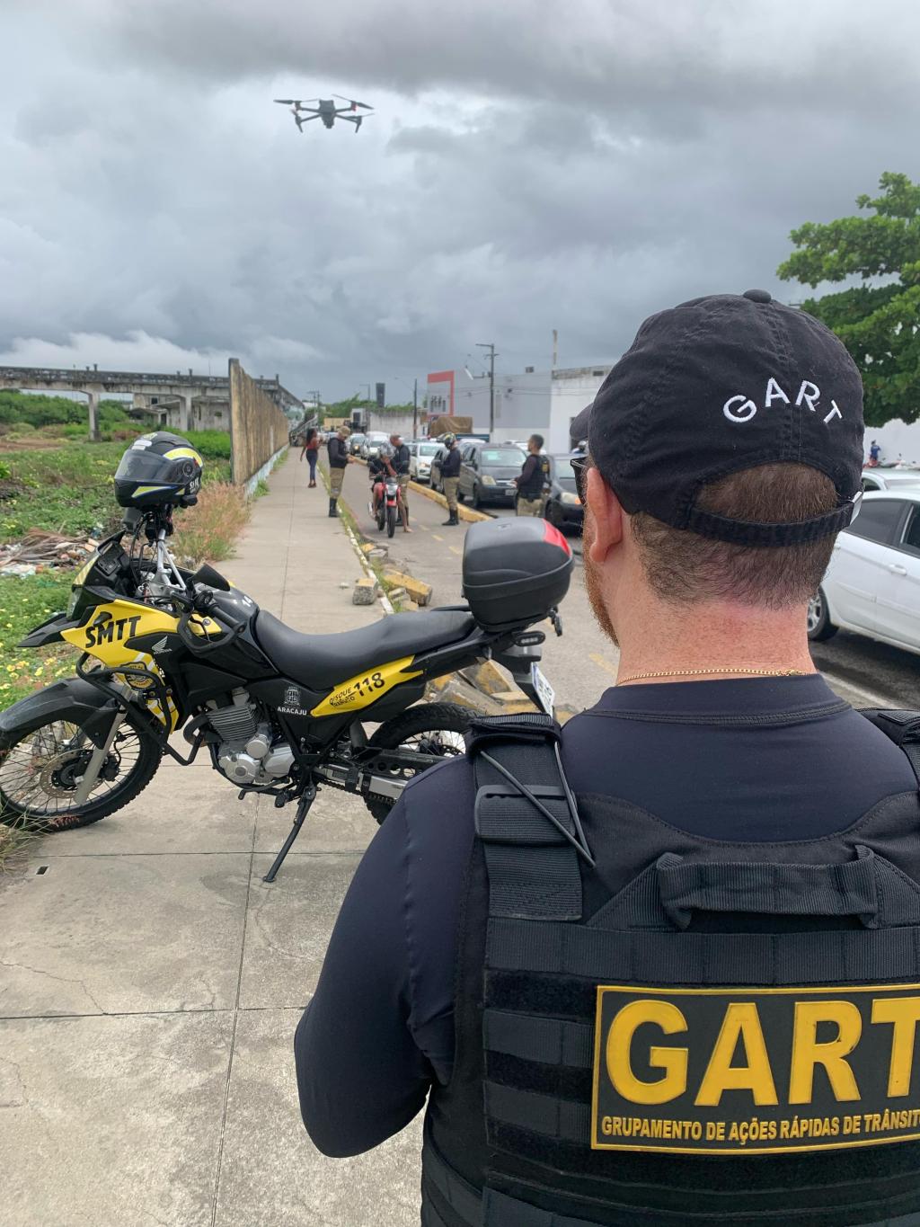 A Superintendência Municipal de Transportes e Trânsito (SMTT) de Aracaju realizou uma operação de fiscalização, nas proximidades da Praça dos Expedicionários, nesta sexta-feira, 21. A ação, que atendeu a uma solicitação de ciclistas e trabalhadores que transitam pela avenida Augusto Franco e se sentem vulneráveis com a constante presença de circulação irregular de motocicletas, contou com a atuação de agentes do Grupamento de Ações Rápidas de Trânsito (GART), e o apoio de um drone para monitoramento.