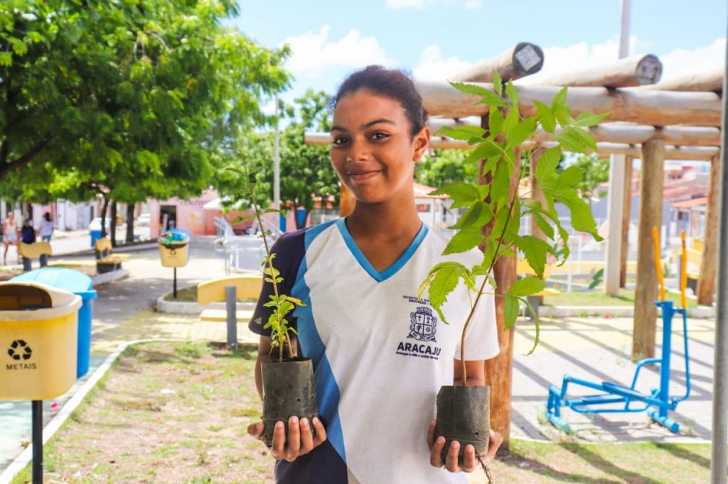 Emilly Fernanda, estudante da rede municipal de ensino, aprendeu com sua avó a importância de cuidar das plantas. “Gosto muito de plantas, elas são importantes para todos nós. Minha avó me ensinou a cuidar delas e além disso, ela é uma ótima rezadeira, então as plantas cuidam da gente no corpo e na alma”, disse a adolescente que levou para casa Babosa e Pata-de-vaca.