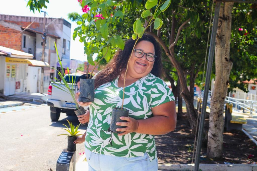 A doação de 200 mudas entre arbóreas e medicinais foi recebida com muita alegria pela população. Flávia Santos, moradora do bairro, foi a primeira a chegar. “Por meio da divulgação na rede social e com o carro de som fui informada de que teria essa ação perto de casa e vim garantir as minhas mudas. Com toda alteração climática, o calor absurdo e a pouca chuva, a gente tenta dentro do que pode combater essa situação e plantar é um ótimo caminho. Ipê-de-jardim e capim-santo foram as que escolhi e a minha mãe, está levando Pata-de-vaca”, comentou.