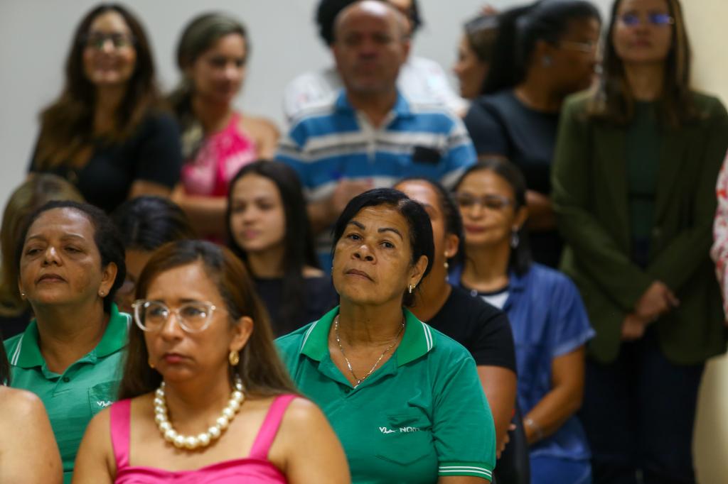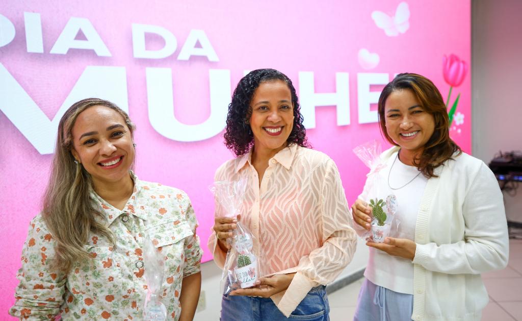 Para completar a homenagem, cada servidora recebeu uma planta de mini cacto com a mensagem “Você Inspira, Você Transforma. Feliz Dia da Mulher!”. Também foram sorteados brindes de maquiagem da Mary Kay, e representantes da marca maquiaram as servidoras. “Gostei muito desse momento e de conhecer um pouco da história da prefeita. Ela é uma mulher que nos inspira”, afirmou a copeira Aline Dias, de 35 anos. “Também gostei muito desse momento de homenagens, e ainda mais por ter sido uma das sorteadas para receber o brinde”, comemorou a agente de limpeza Cláudia Regina, de 51 anos.