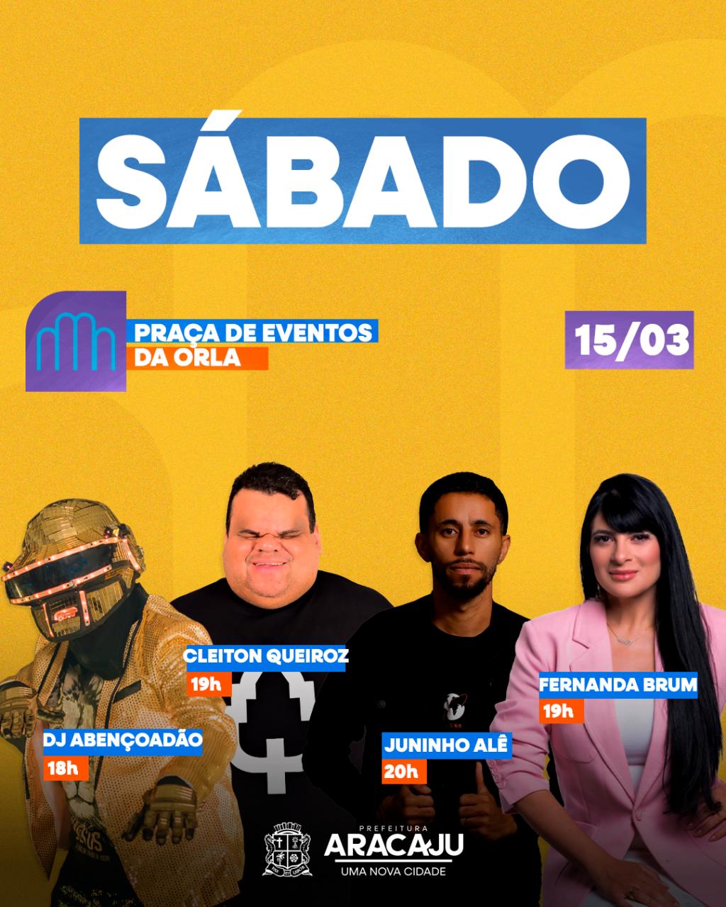 Como parte das comemorações pelos 170 anos de Aracaju, a Prefeitura Municipal realizará um grande show evangélico no dia 15 de março, na Praça de Eventos da Orla de Atalaia. O evento contará com apresentações de renomados artistas da música gospel nacional e local, reforçando a importância da fé cristã na capital.Dj Abençoadão, Fernanda Brum, Clayton Queiroz e Juninho Alê prometem animar a população na noite da festa.