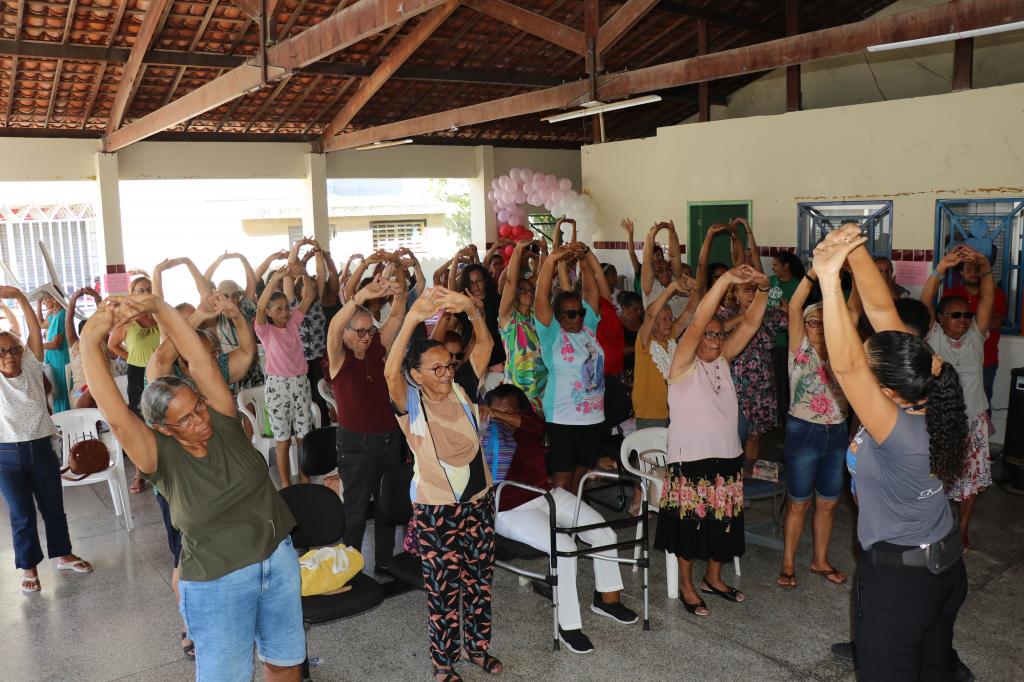 Na programação, mulheres assistidas pelo equipamento e idosas que fazem parte do Serviço de Convivência e Fortalecimento de Vínculos (SCFV) participaram de uma aula de alongamento, além de palestra com profissionais do Centro de Referência de Atendimento à Mulher em Situação de Violência (Cram).